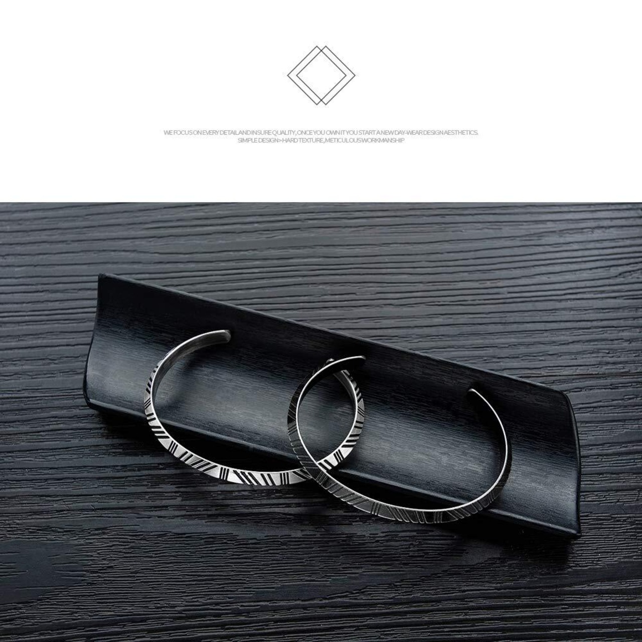 Rockyu ブレスレット メンズ ブラック ステンレス C形モチーフ C形バングル 刻印 フリーサイズバングル ブレスレット アレルギー対応