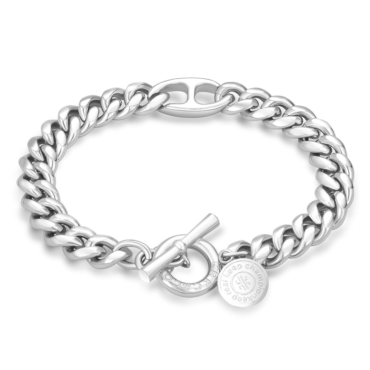 KRKC&CO メンズブレスレット 喜平チェーン マンテルブレスレット 幅8mm サージカルステンレス K14金メッキ 金属アレルギー対応 おしゃれ 男性 バングル 人気 プレゼント
