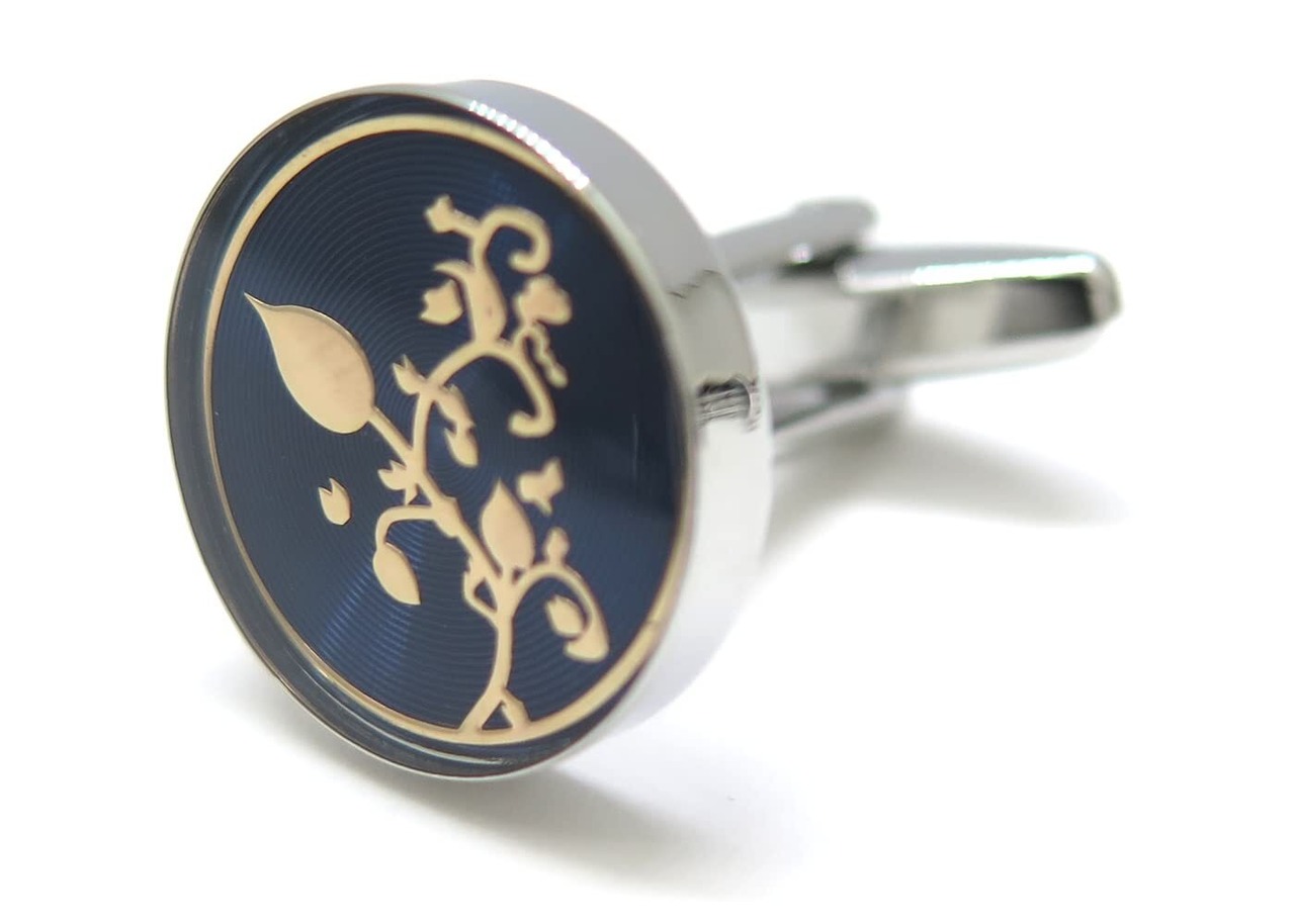 クラフトパークス サーキュラーピクチャー カフス 植物 カフスボタン カフリンクス 父の日 おしゃれ シンプル 上品 ブルー 青 ゴールドモチーフ ボタニカル 合わせやすい デザイン 見映え 綺麗