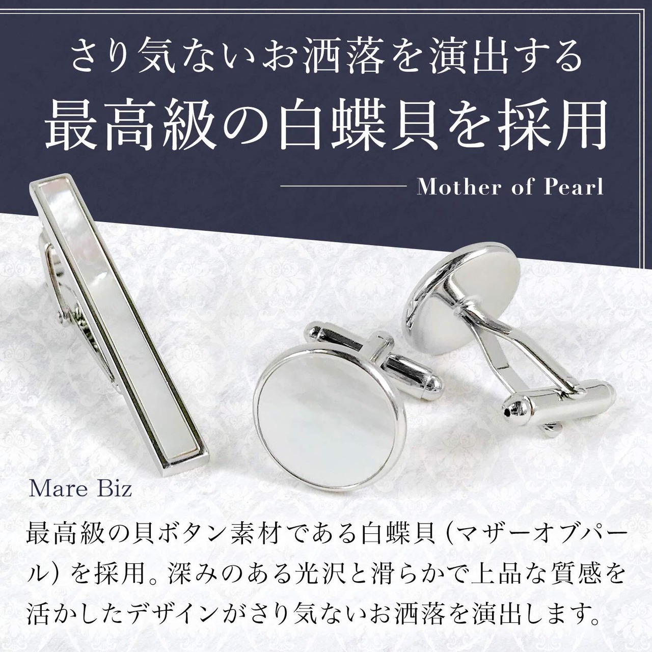 Mare Biz(マーレビズ) カフス タイピン セット メンズ 男性 オシャレ シンプル ビジネス 結婚式 披露宴 プレゼント ギフト BOX付き (シルバー)