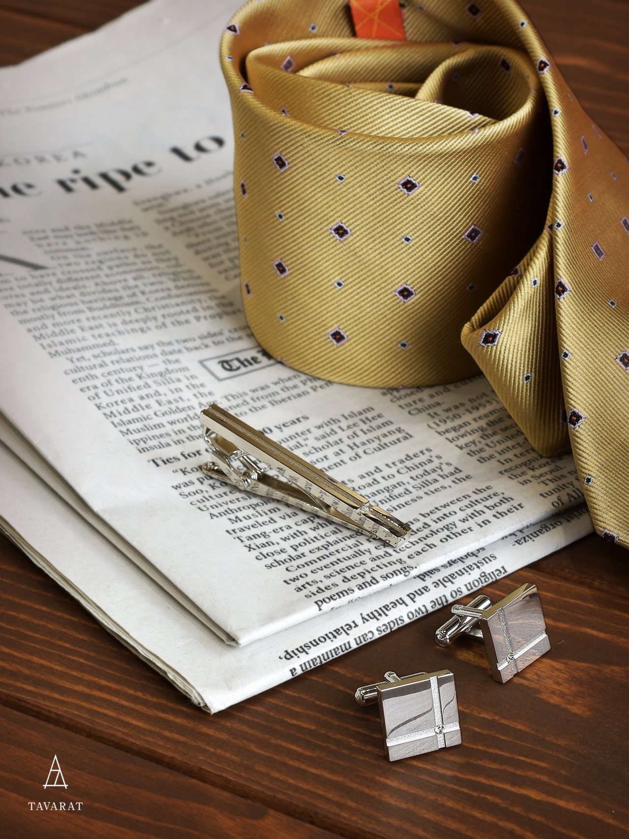 ビジネスマンの身だしなみ、ネクタイピンとカフス。スーツの胸元と袖に使うこの装飾品は、使う人の人物を映す鏡でもあります。シンプルに、そして格好良く。Kts-001,002はそんなコンセプトのもと作られたネクタイピンとカフスのセットです。