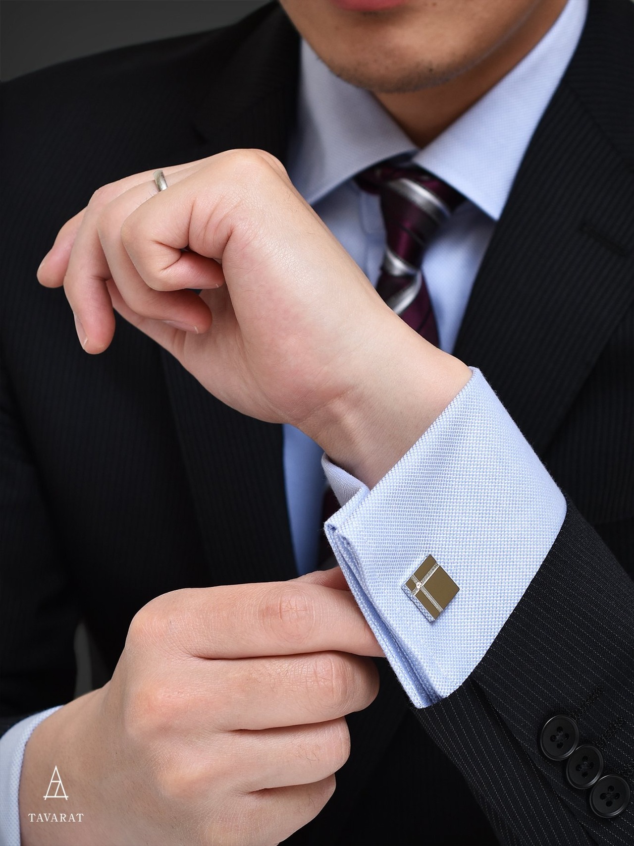 銀行員さんとの話の中から産まれたTAVARATのカフス、Tps-040。ネクタイピンと同じ仕様の加工でこちらもシンプルながら細かな加工を丁寧に仕上げています。袖元でさりげなく光るスワロスフキーは商談での強いインパクトを残してくれます。