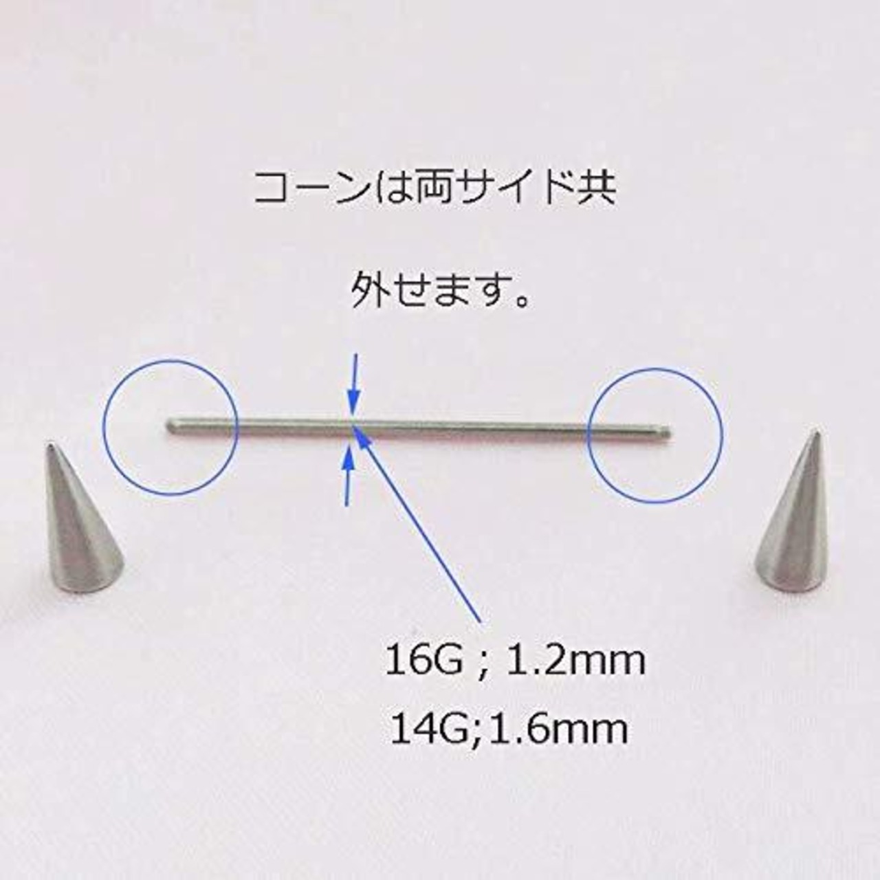 ●素材:ステンレス ●ゲージ:14G(約1.6mm) ●全長:約60mm ●シャフト内径:約37mm ●ヘッド径:高さ約12mm