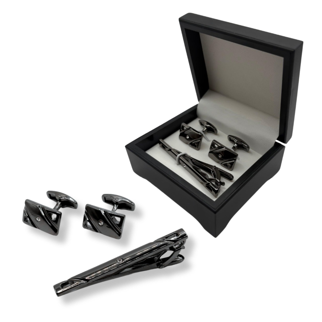 ネクタイピン カフス 箱付き タイピン 上品 高級ケース付き メンズ シンプル おしゃれ ワニ口式 ビジネス プレゼント 結婚式 日常 仕事 成人式 冠婚葬祭 父の日 ANY SELECT