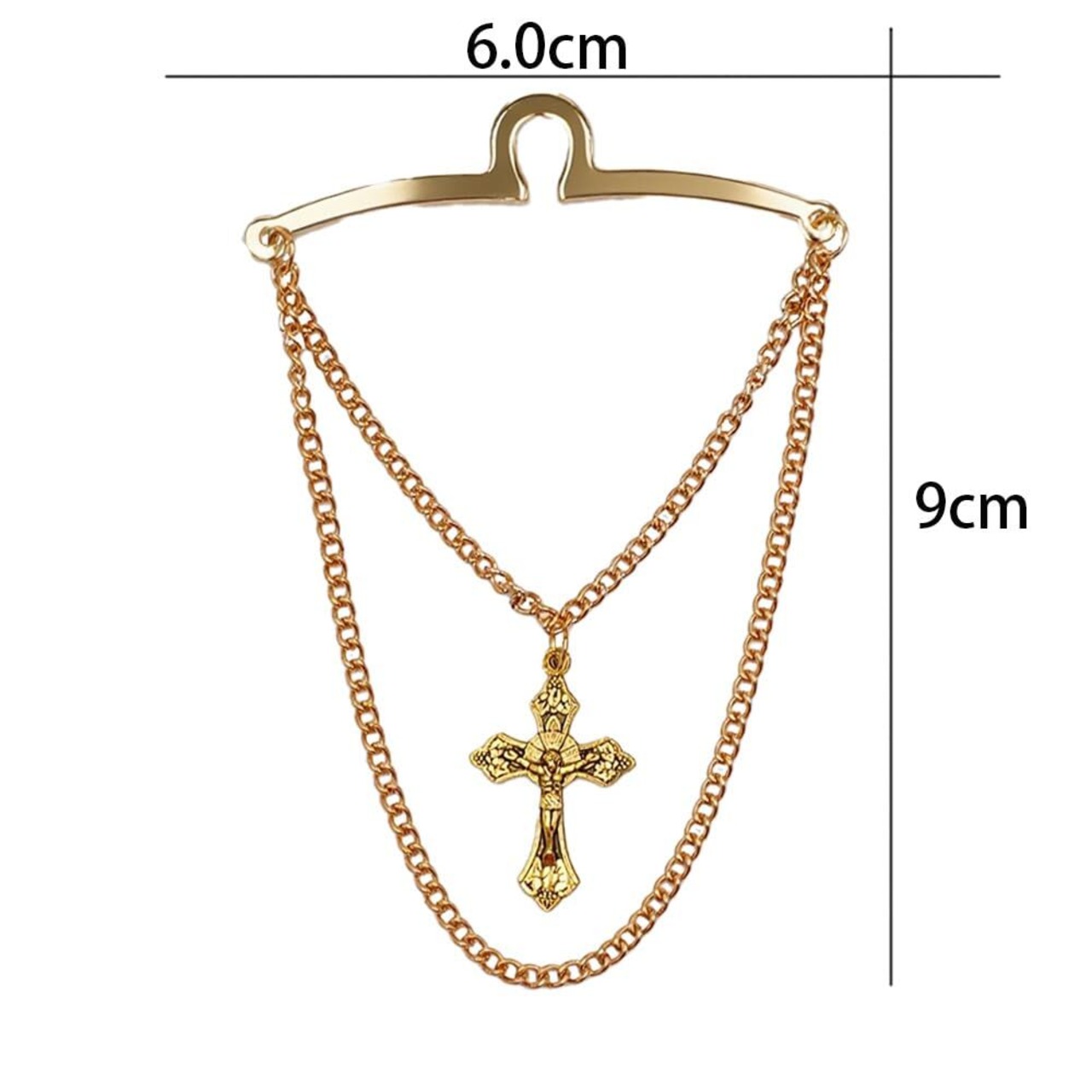Yierda おもしろ 十字架 チェーン ネクタイピン メンズ おしゃれ ゴールド ブラック シルバー タイピン チェーン 日常仕事 結婚式 スーツ ビジネス アクセサリー プレゼント