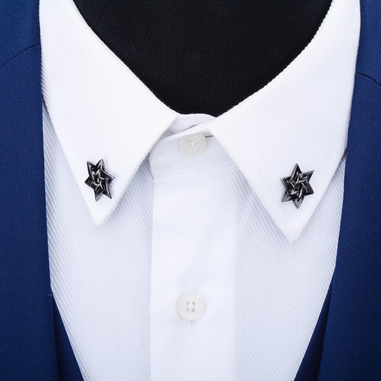Rockyu メンズ 胸元ピン 六角形の星 バッジ ガンメタル ステンレス 立体的デザイン ファッション アクセサリー ビジネス 結婚式 おしゃれなデザイン