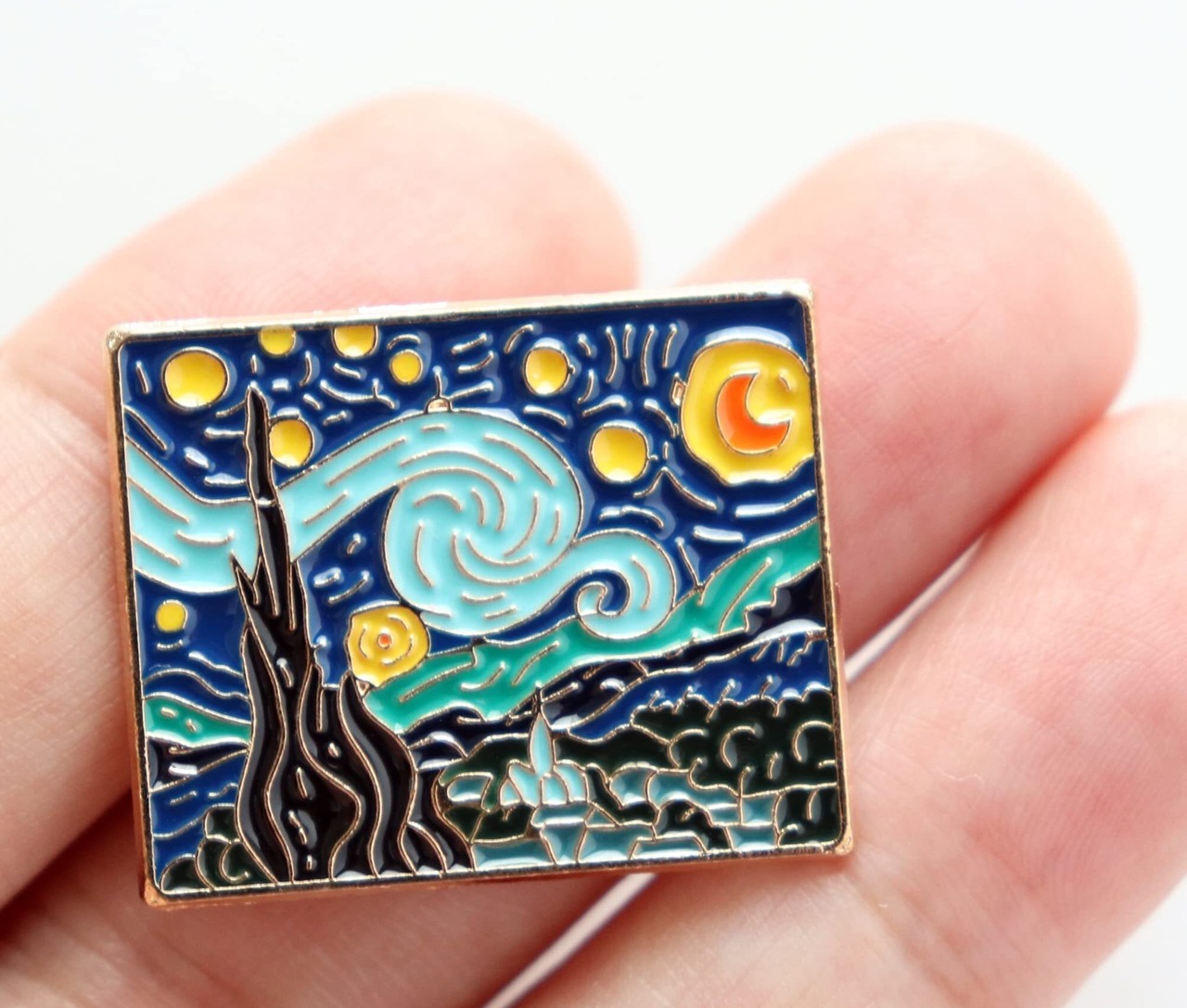 ピンバッジ ゴッホ 星月夜をデザインしたピンズ フィンセント・ファン・ゴッホの名画 合金製 2.8×2.3cm