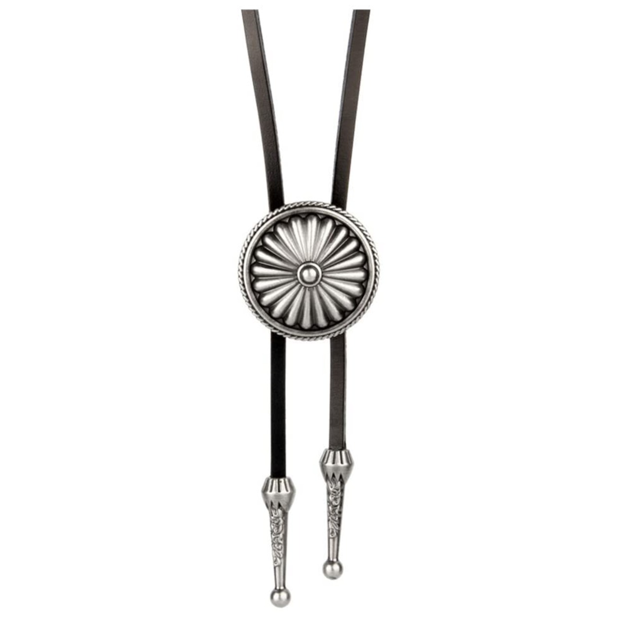 [Hikaru.G] ループタイ 和風 菊紋 アンティーク調 メタル製 レザー紐 おしゃれ ポーラータイ ネックレス
