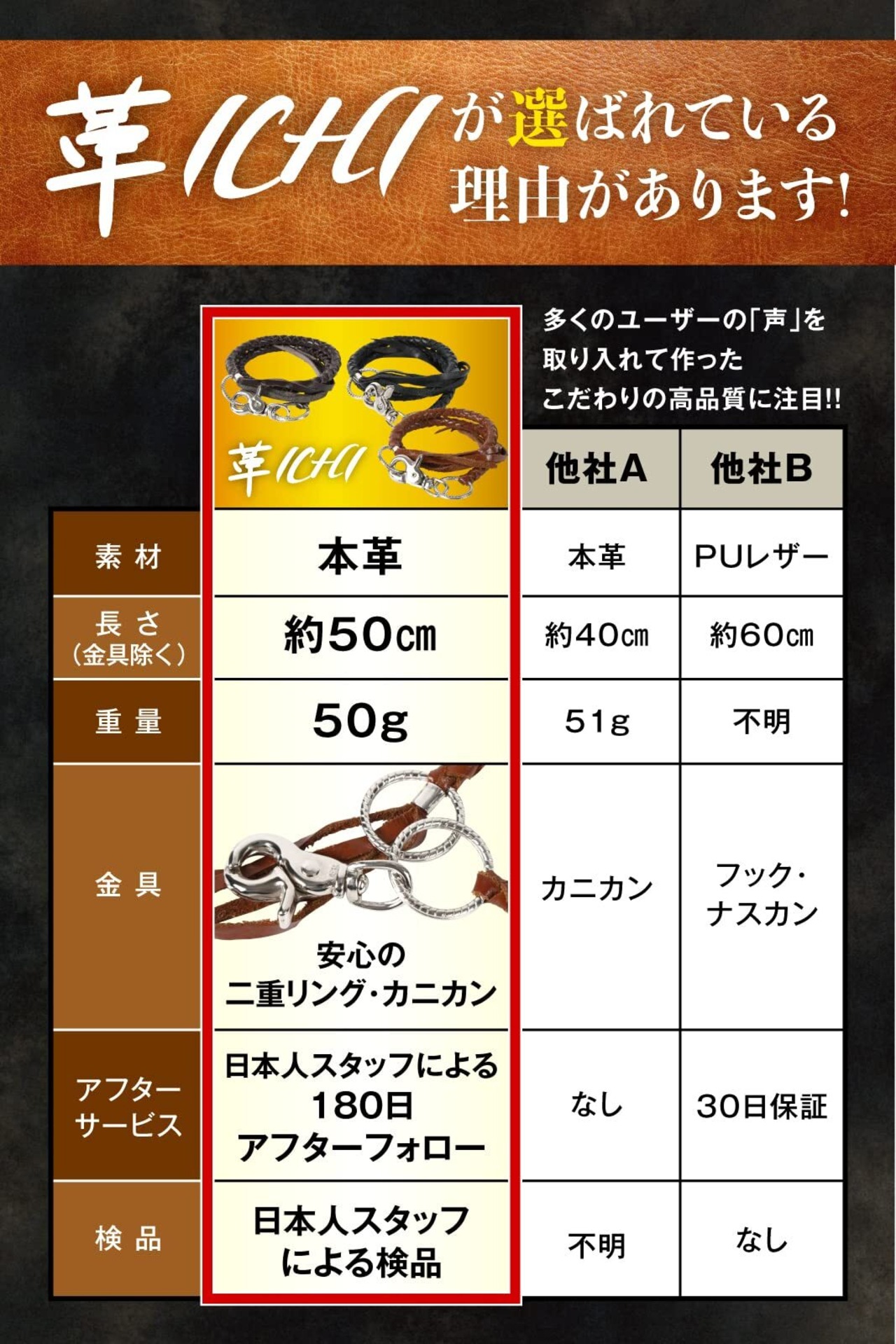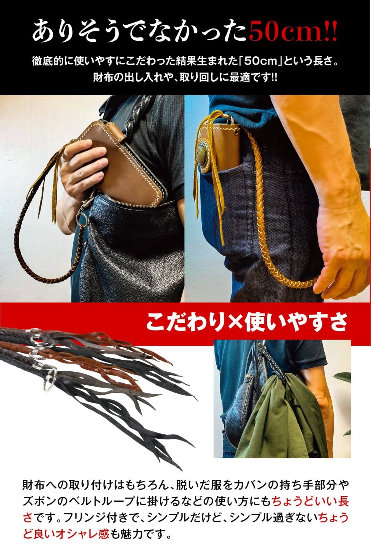 [革ICHI] ウォレットチェーン 革 レザー 【3冠達成 ありそうでなかった50cm】 4本編み 手編み ハンドメイド 牛革