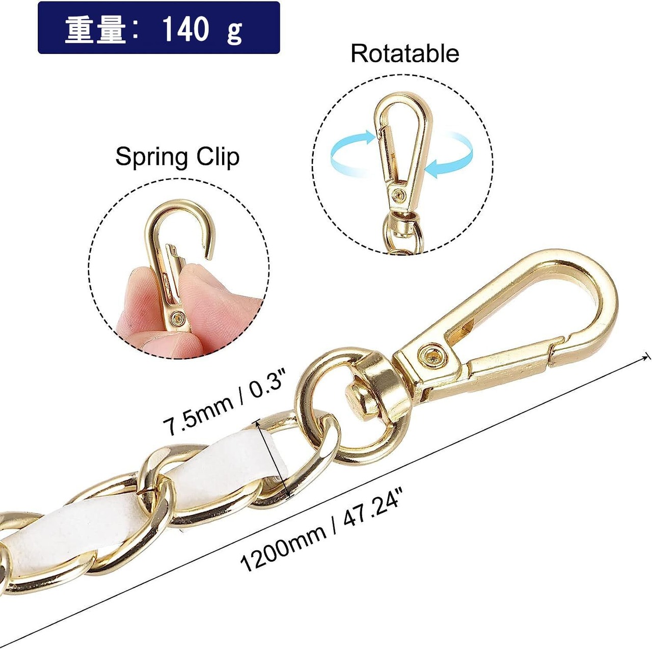[サムコス] チェーン ストラップ 調整可能 ショルダー クロスボディバッグ用 付け替え 120 CM