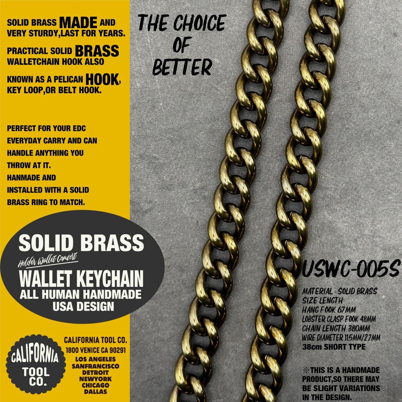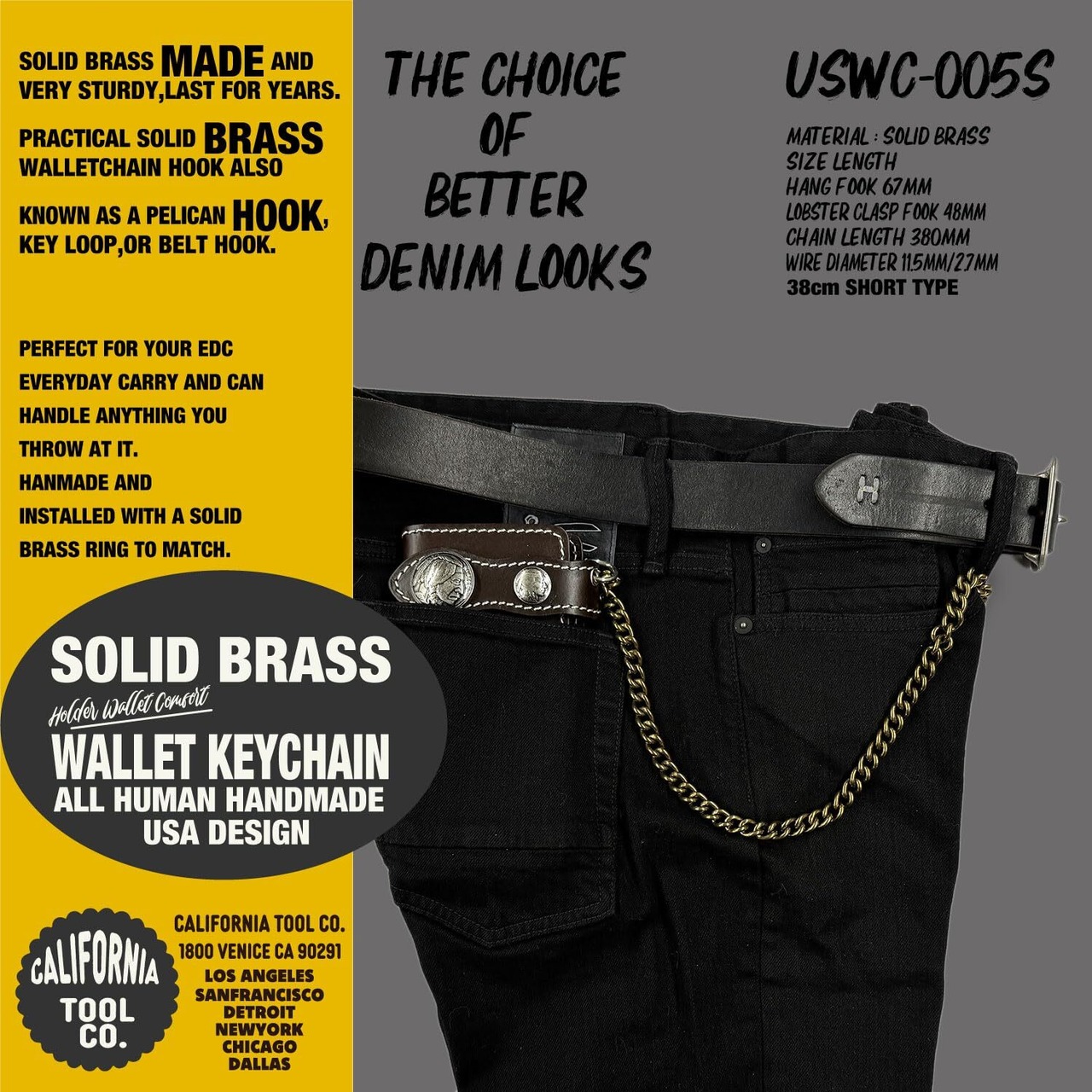 【CALIFORNIA TOOLS】ショートタイプ 真鍮 ブラス ウォレットチェーン 回転フック付き ;USWC-005S