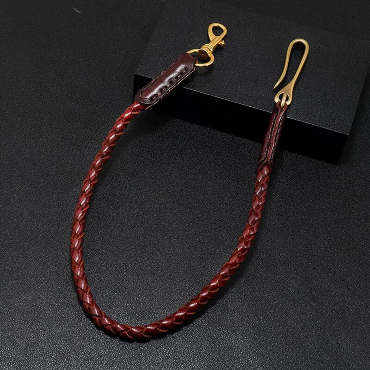 Rockyu パンツチェーン メンズ 本革 編み込み ブラウン ウォレットチェーン 合金フック付き 取り外し可能 レトロファッション 男女兼用