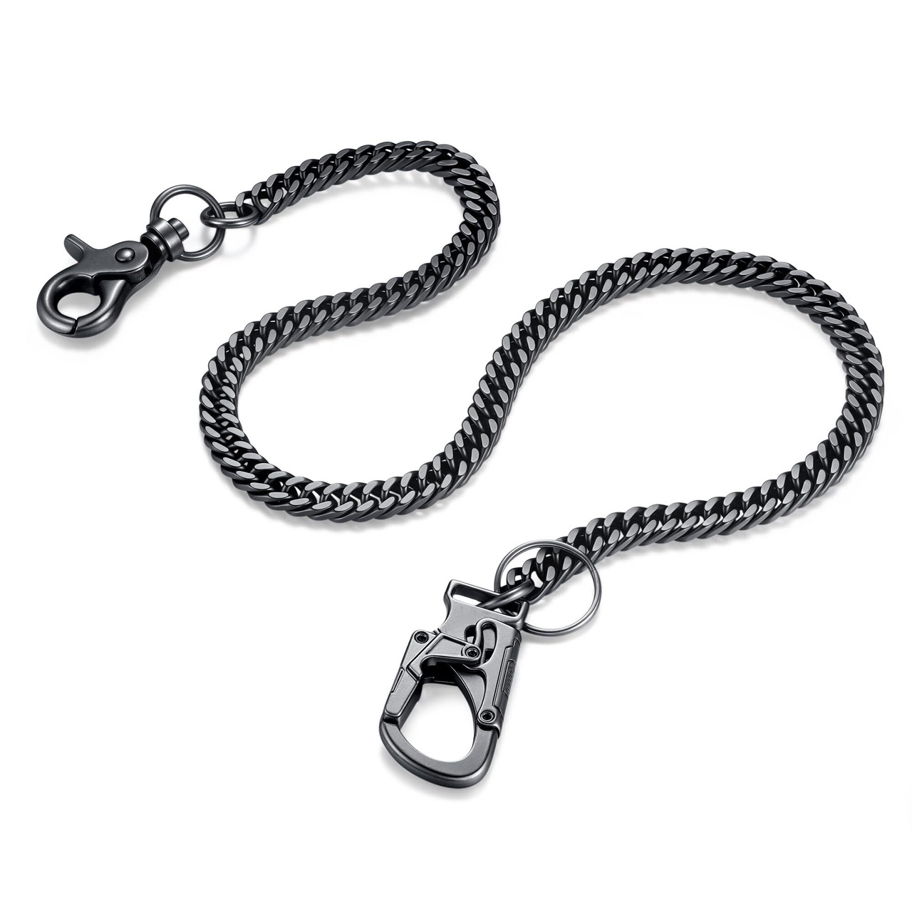 [Ahiller] ファッション ダブルロック ウォレットチェーン、ステンレス製 パンツ キー ハンドバッグ 財布 チェーン 男女兼用 小型ダブルロック機構 ジーンズ ベルト対応