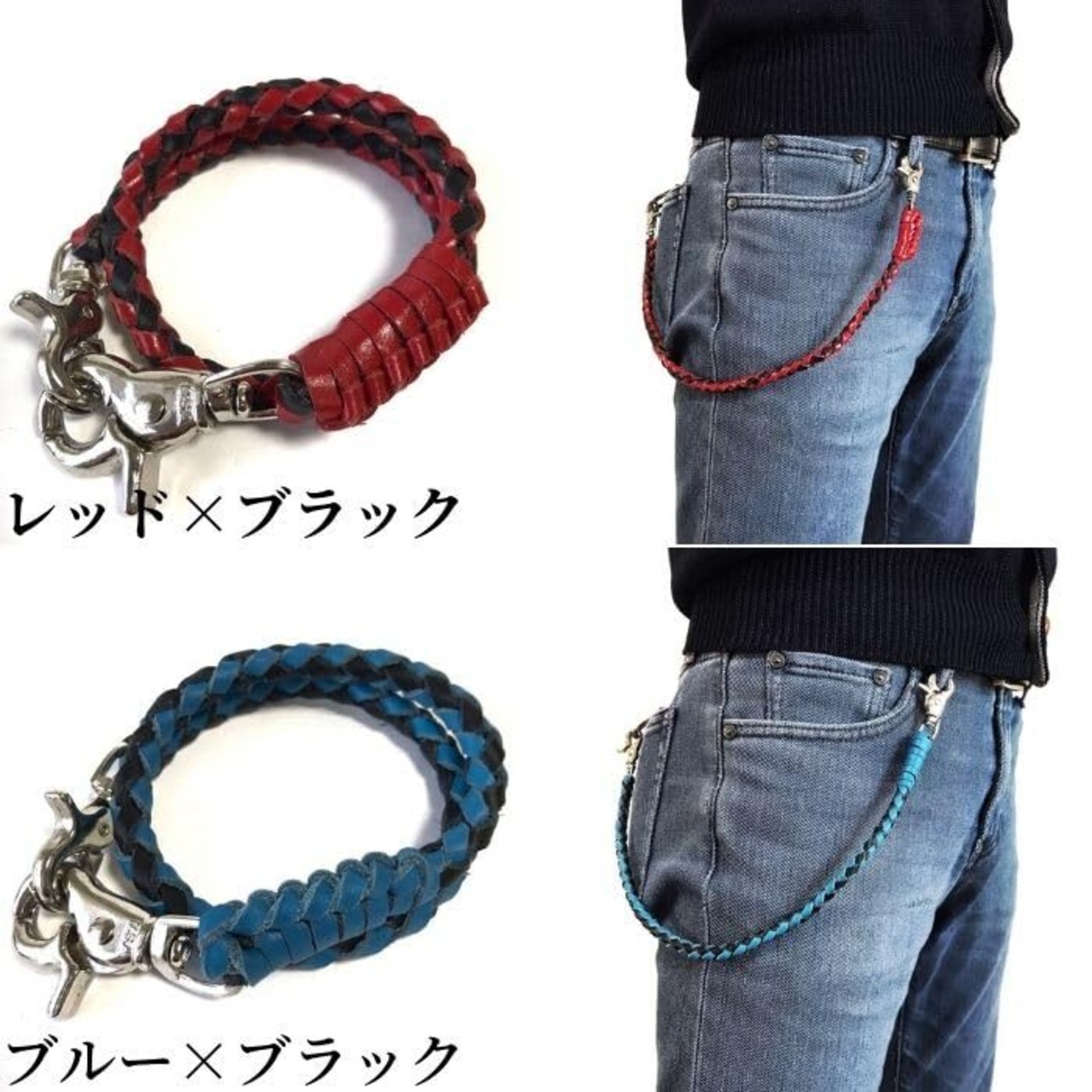 [ASIAN ZACCA] ウォレットチェーン 革 4本手編みウォレットチェーン 45cm 本革ウォレットチェーン レザーウォレットチェーン ウォレットロープ メンズ ウォレット チェーン 財布 レザー バイカー 4本編み(ブラック)ogl0016