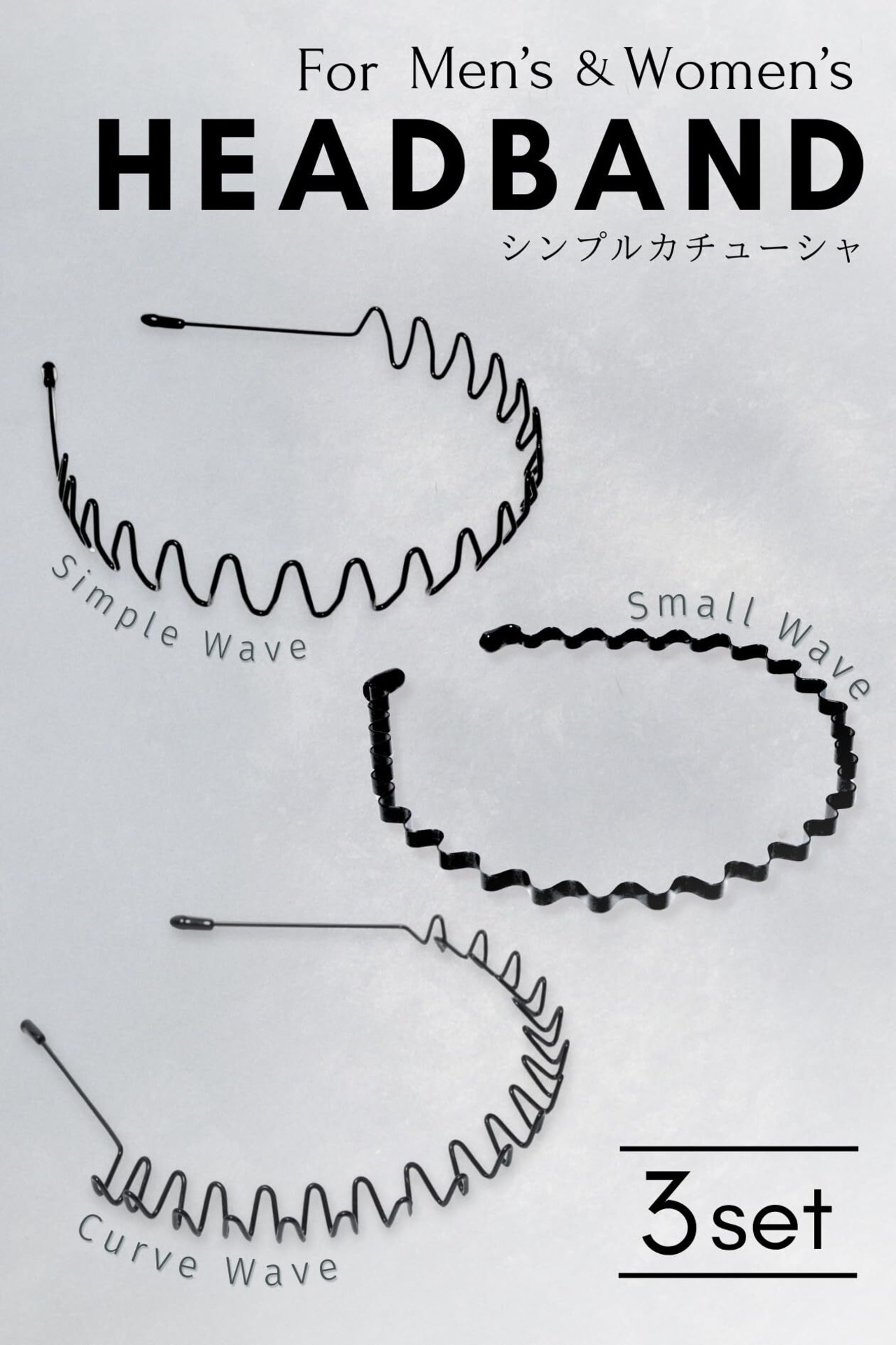 【シンプルデザイン】3本すべてブラックカラーでシンプルなデザインのカチューシャに仕上げました。シーンを選ばずに様々な用途にお使いいただけます。