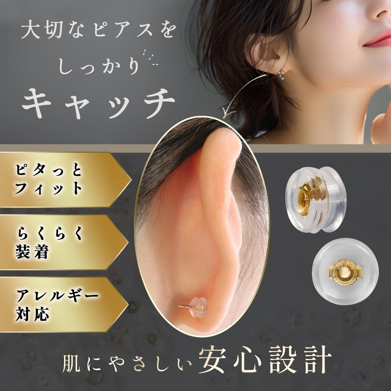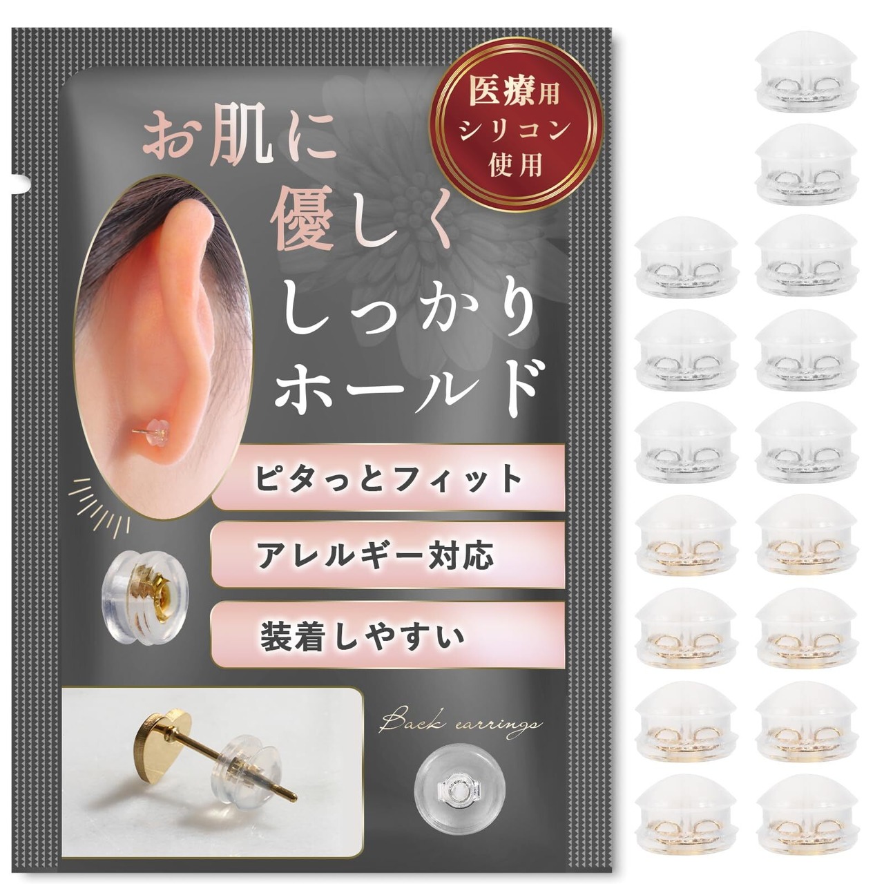 【柔軟なシリコン素材】ピアスをしっかり固定し、外れにくい設計