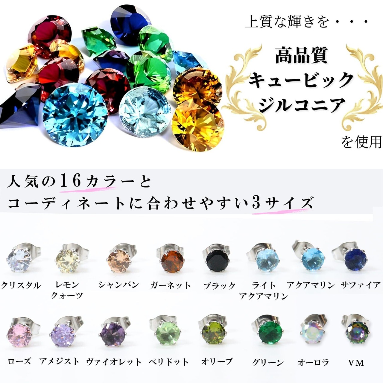 swars ピアス サージカルステンレス 金属アレルギー対応 選べる8カラー ユニセックス ジルコニア 両耳 2個セット
