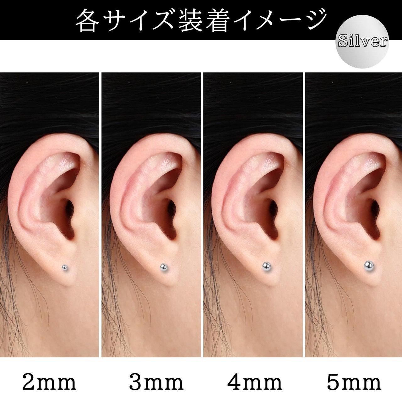 swars ピアス メンズ レディース サージカルステンレス 金属アレルギー対応 丸玉 ボール 両耳用 2個セット (silver 3mm)