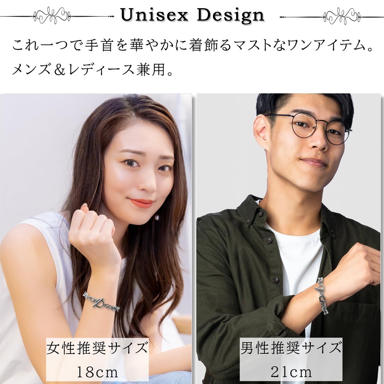 【ユニセックスデザイン】サイズのバリエーションが豊富なので男性、女性関係なくご使用いただけます。春夏は、半袖シャツと組み合わせればブレスレットの存在感でワンランク上のオシャレコーデを楽しめます。秋冬はニットやスウェットからのチラ見せコーデでスタイリッシュな印象を与えることができます。