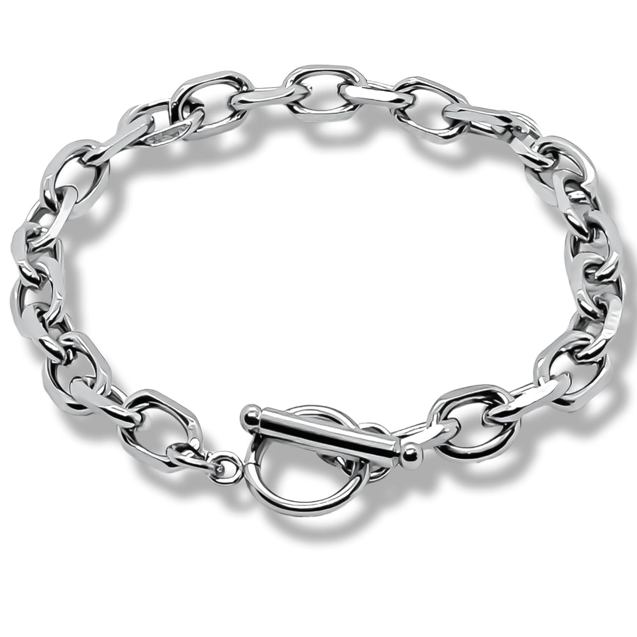 [swars] ブレスレット ユニセックス 金属アレルギー対応 ステンレス マンテル チェーン シルバー (21, 幅:8mm)