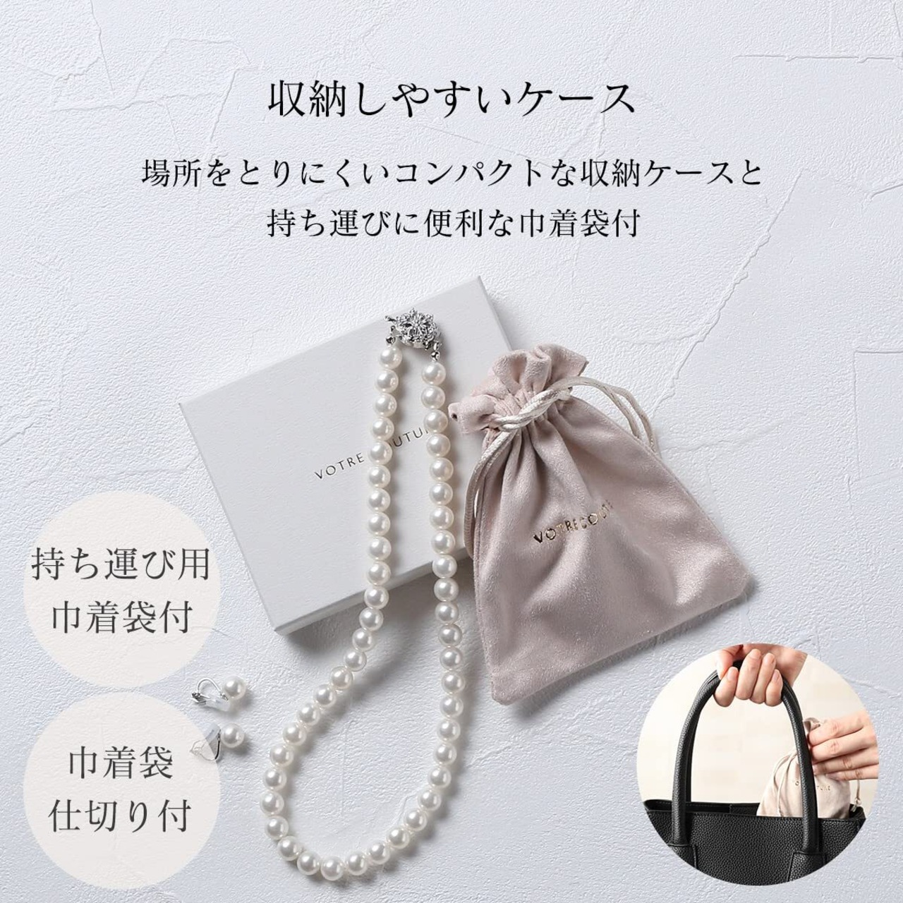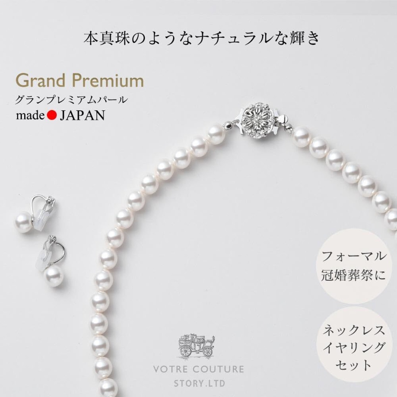 [VOTRE COUTURE] パール ネックレス 高級国産 グランプレミアム 真珠 冠婚葬祭用 8mm 42cm ホワイト イヤリング ブランド3年