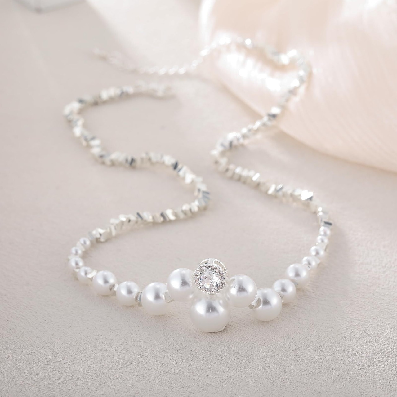 【商品詳細】チェーン全長 約:40+5CM。ペンダントのサーズ約:5mm(ジルコニア),10mm(パール)素材:サージカルステンレス、パール、ジルコニア。付属品:精美な包装ケース。