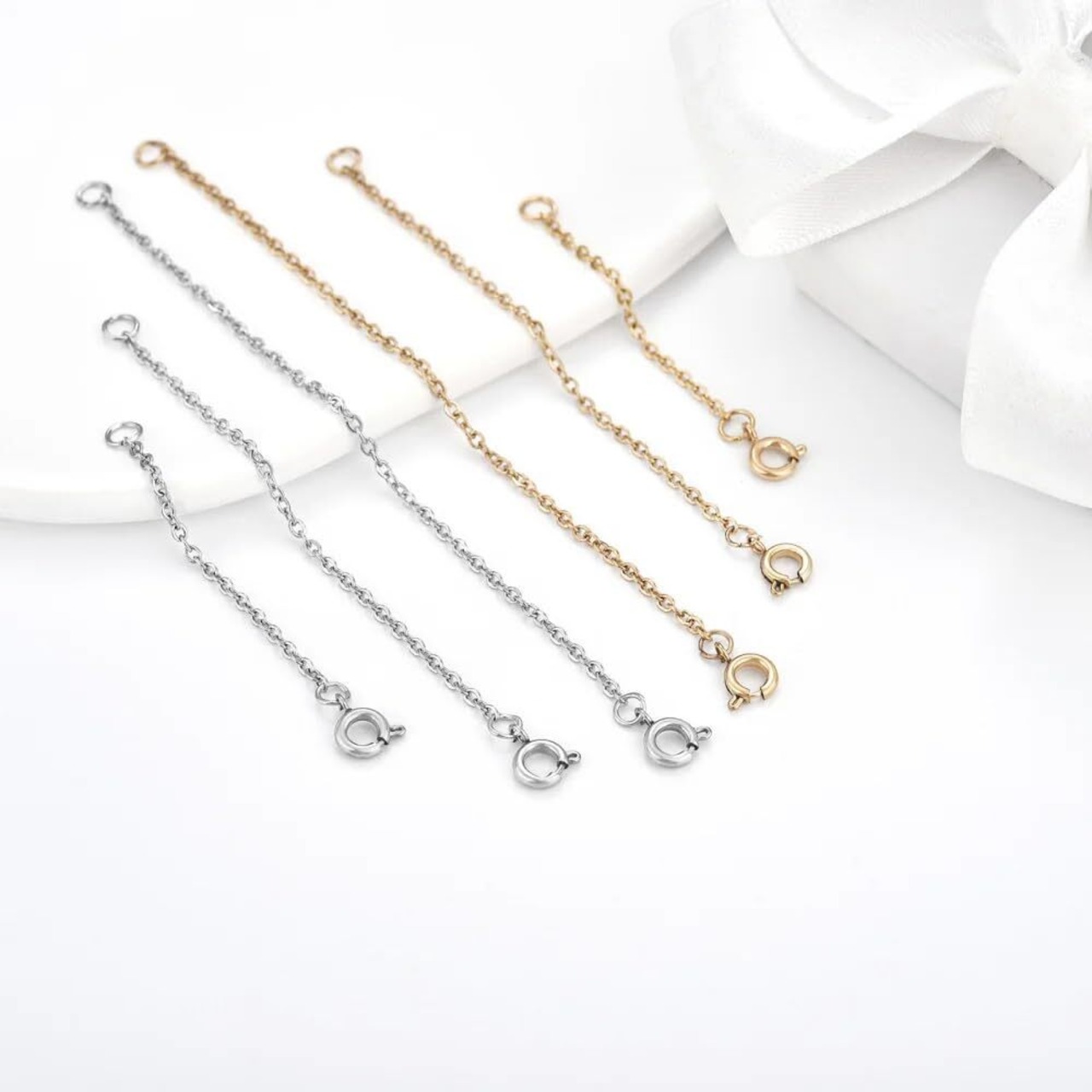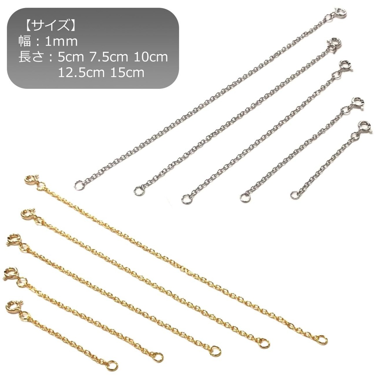 [オーディオファン] 延長 チェーン ネックレスの長さを調整用 ステンレス製 5cm 7.5cm 10cm 12.5cm 15cm シルバー ゴールド シルバーゴールド各5本計10本セット