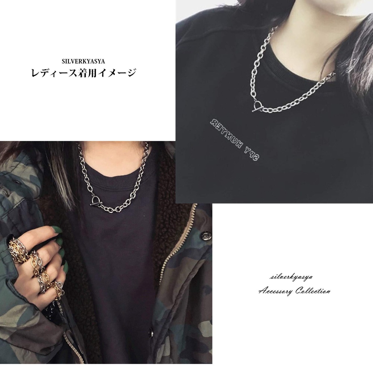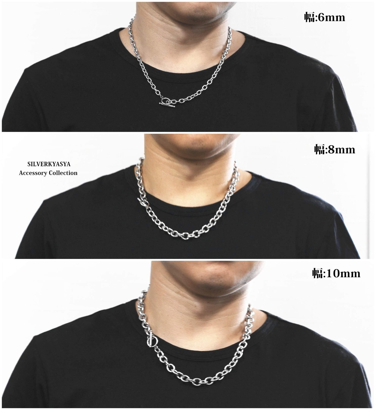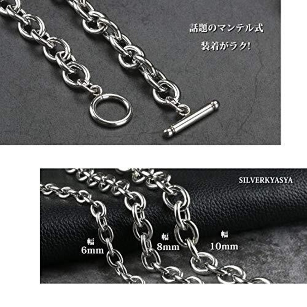 [silver KYASYA]太幅 ステンレス チェーンネックレス メンズ レディース マンテル ネックレス シルバー 銀色 あずきチェーン シンプル ネックレス 50cm