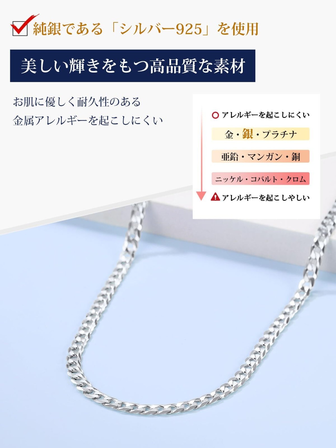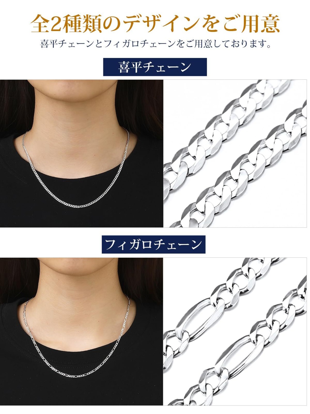 [Suplight] ネックレス チェーン メンズ シルバー925 レディース 喜平ネックレス アレルギー フィガロチェーン アクセサリー