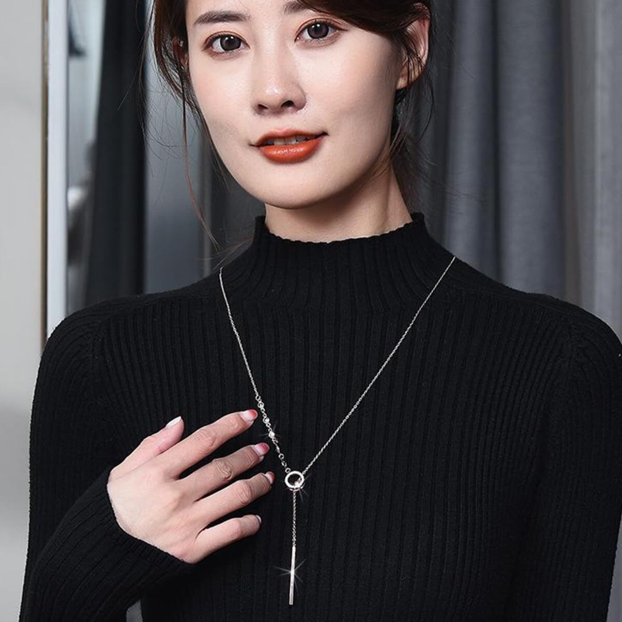 [UOUHAIO] ロングネックレス レディース ファッション 女性用 長いネックレス Y字 キラキラ セーターチェーン スライド調整式 プレゼント 女性 アクセサリー ジュエリー (czリング)