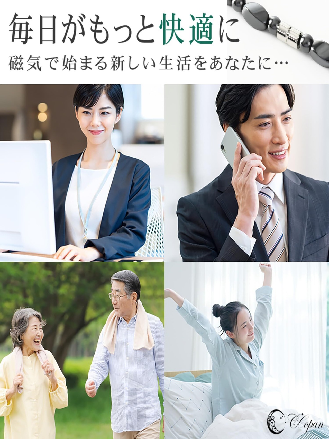 【テレワーク、デスクワーク】デスクワークなどで起きるさまざまな変化を、磁気アンクレットで防ぎます。自宅やオフィスなどでの長時間のパソコン操作、スマホ操作、ゲームなどにも対応。ランニング、ジムなどの運動など、健康を考える方に人気。