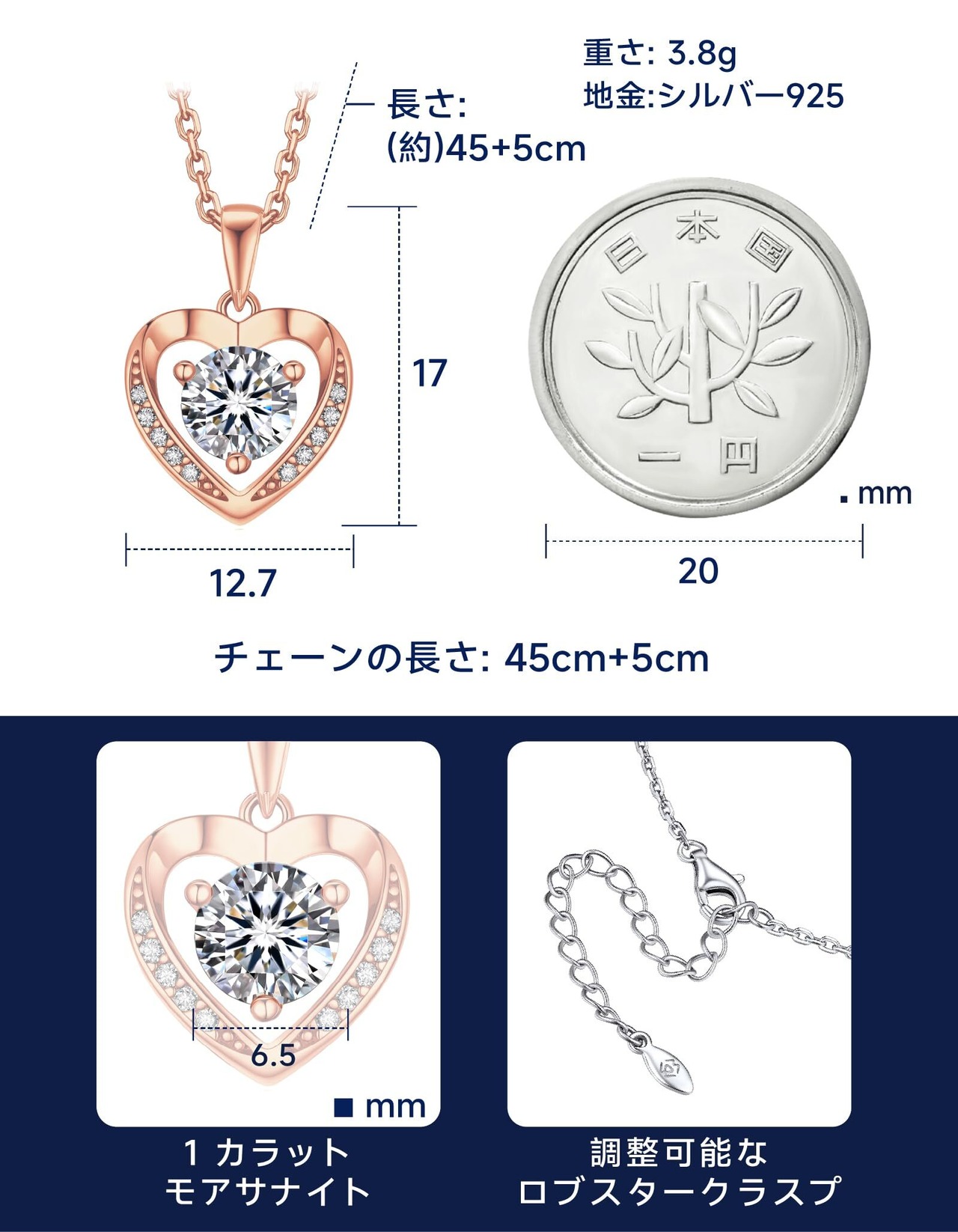 【 ハートシンプルネックレス】➣ ラウンド ブリリアントカットのモアッサナイト(6.5mm/1ct)を3本爪でセッティングしたMomentWishレディースネックレスは、ハートペンダントの両側には10石のモアッサナイトがあしらわれ、大切に細工されたシルバー925ネックレスバーにぶら下がっています。このハートネックレスは、記念日などの特別な日で着用することがお勧めです。また、普段着やカジュアルなイベントのスタイリッシュなアクセサリーとしても活躍します。