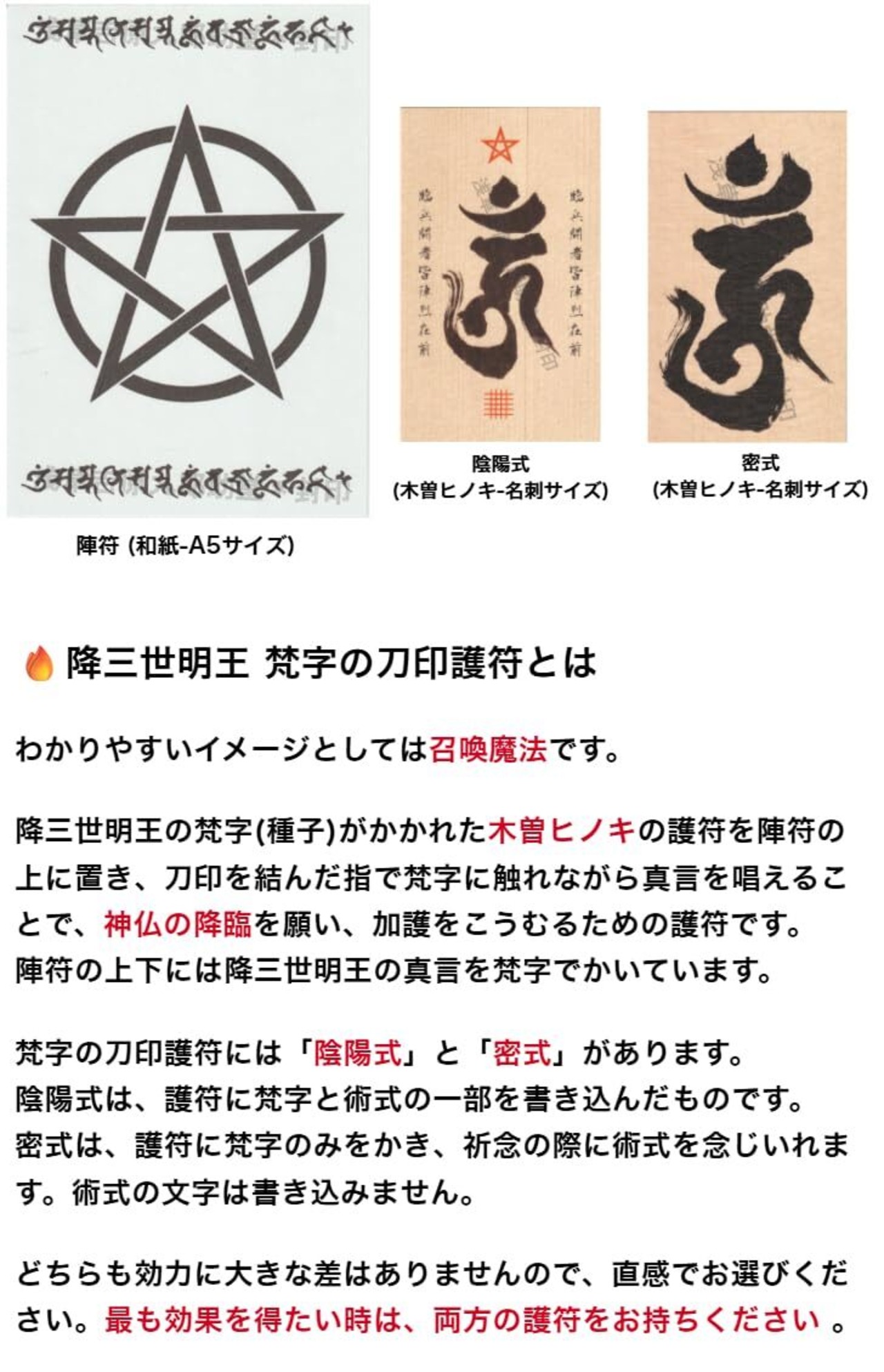 【呪い返しの鎧守】生霊・悪霊の邪気や魔障など悪しき念を祓い浄化する「降三世明王」梵字の刀印護符 (お守り 木曽ヒノキ-密式と陣符)