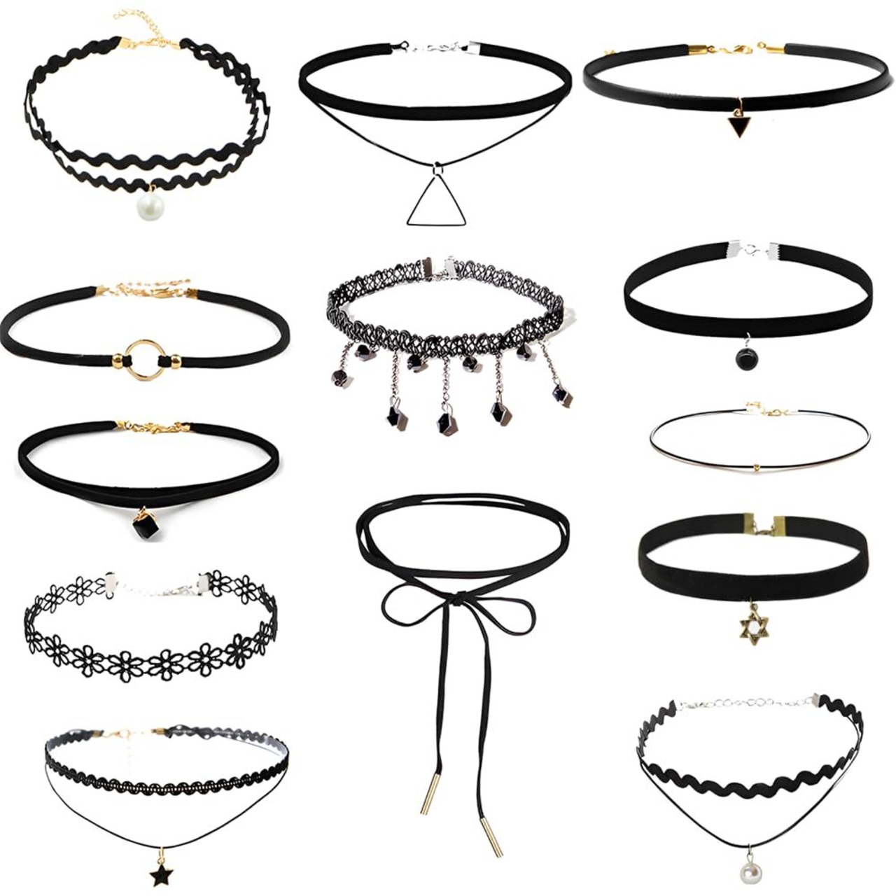 [YUWENW] チョ ーカー ネックレス 首輪13点セット 伸縮タイプ 調整可能 レディー choker レース ア かわいい ペンダント付き クセサリー シンプル ファッション ゴシック様式 ロールプレイング 黒
