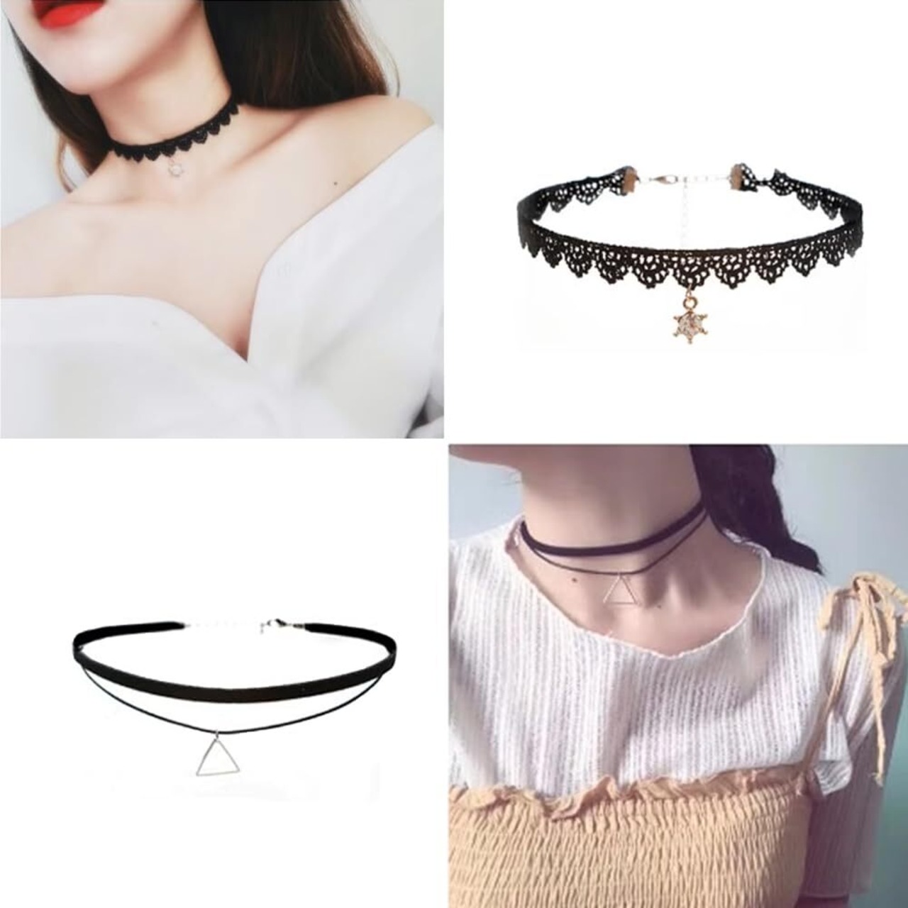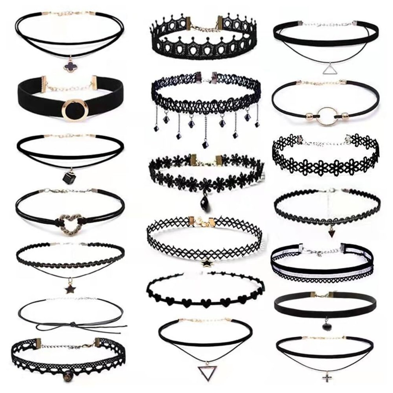 [HEJINYUN] レディースチョーカー 黒 20点セット シンプル おしゃれ カジュアル アクセサリー チョーカー ネックレス 首輪 伸縮タイプ ペンダント コスプレ モード系 チョーカー