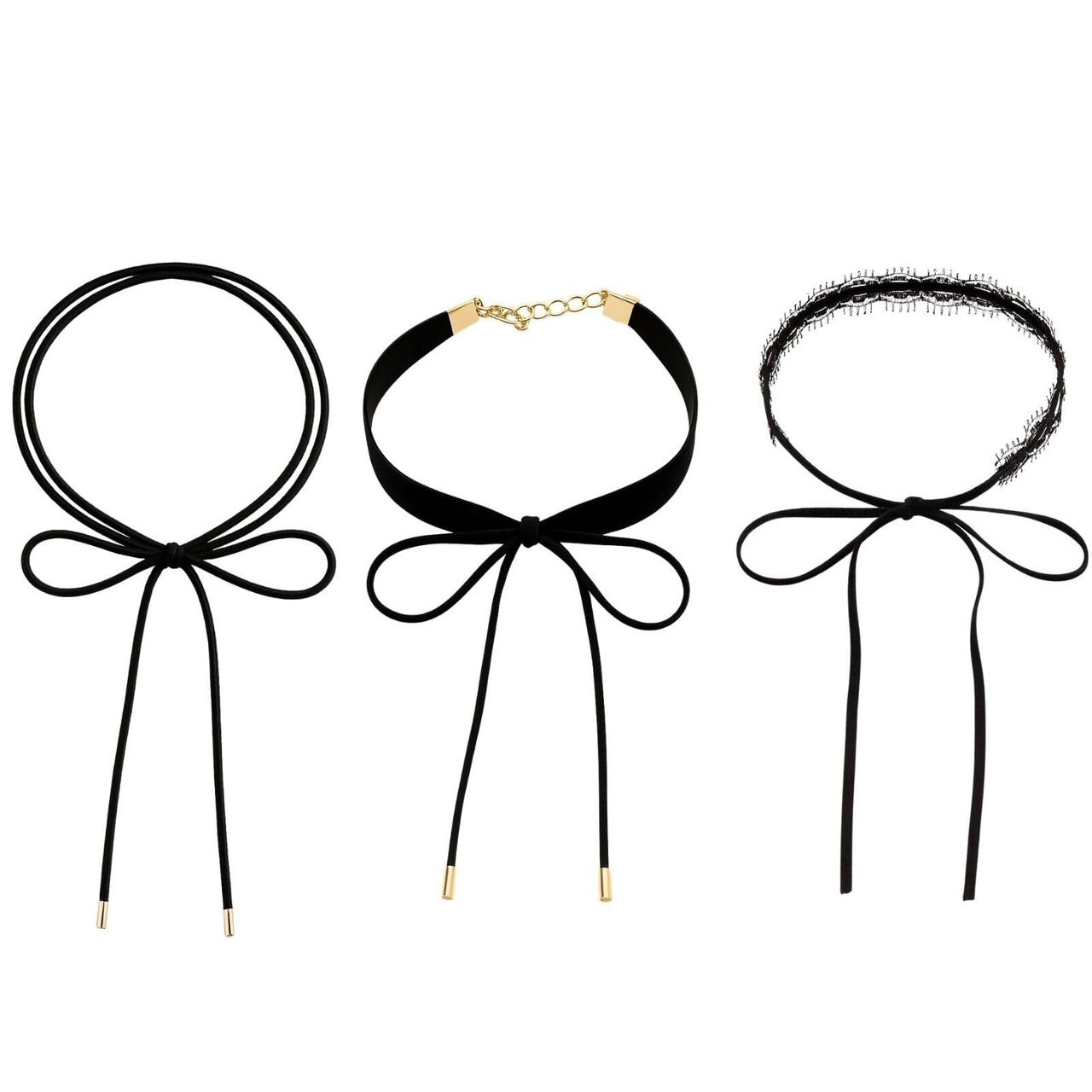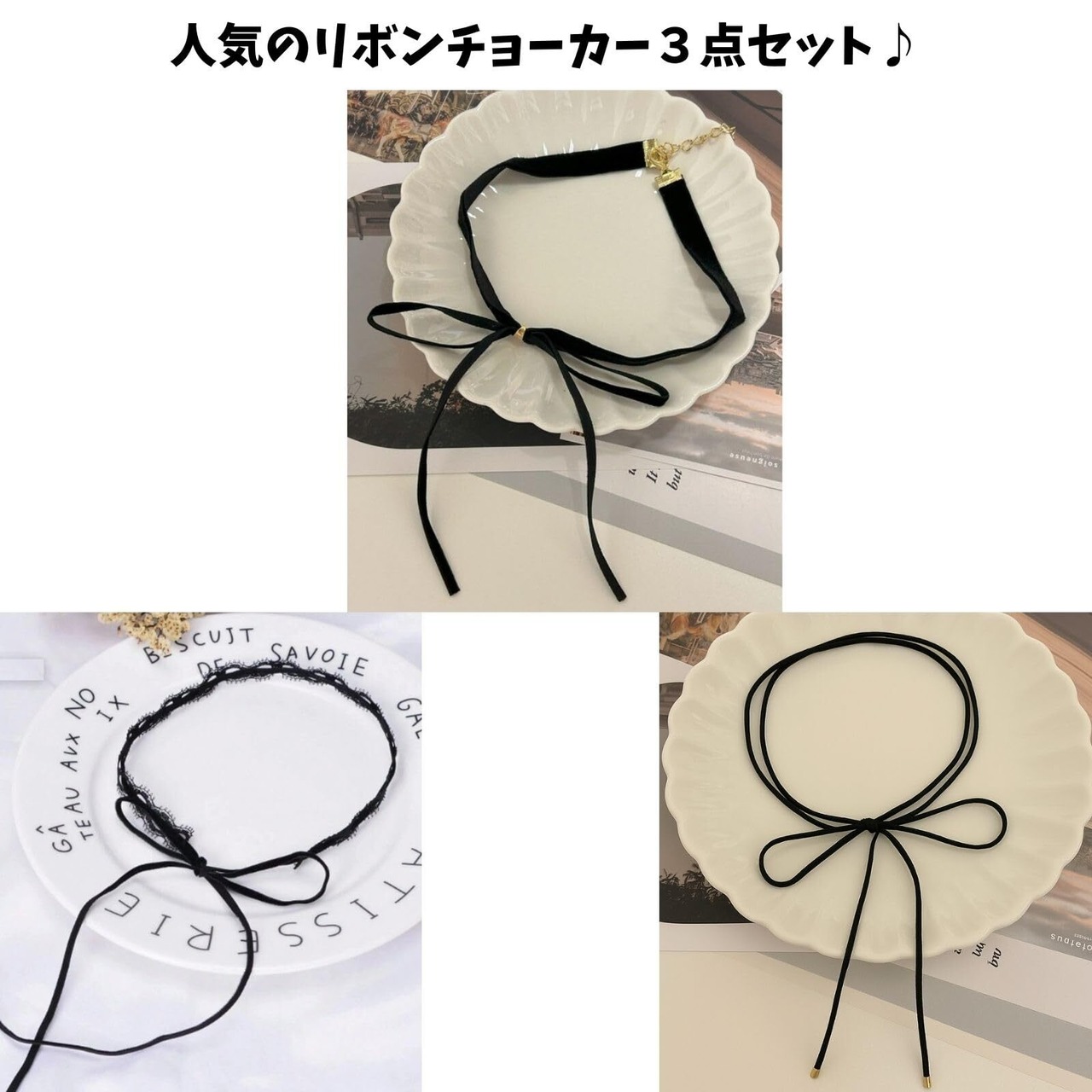 【製品概要】 セット内容:チョーカー3本(リボンデザイン) カラー:ブラック デザイン:韓国風/レディース向け 留め具:金属製アジャスター付き(デザインにより異なる)