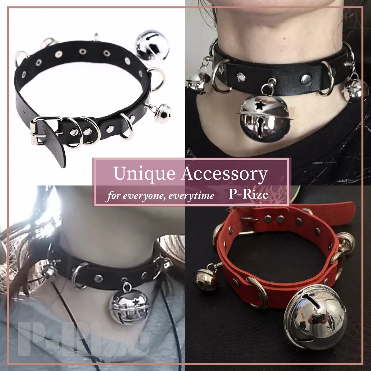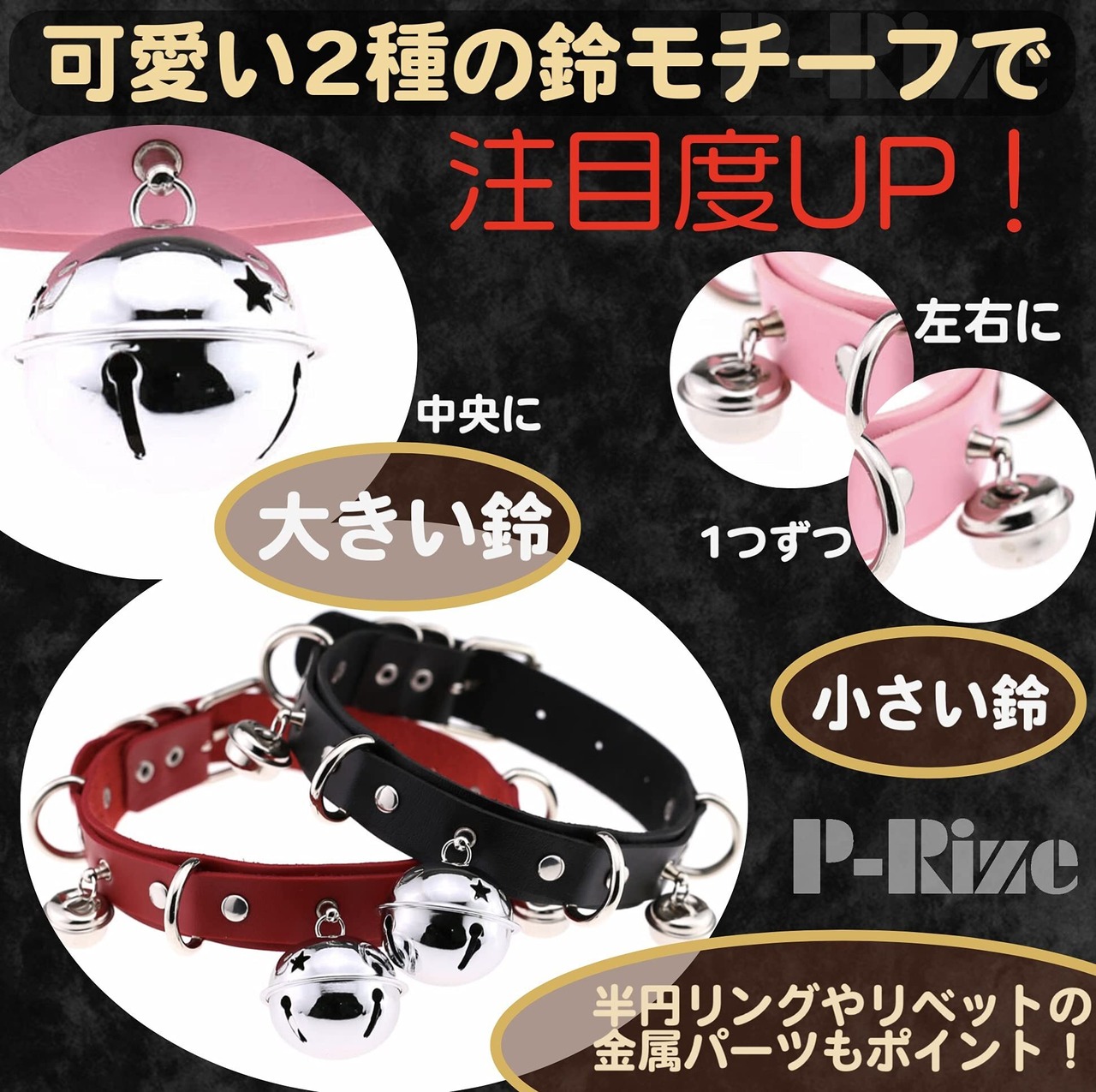 [P-Rize] チョーカー 鈴 ベル 人間用 首輪 メンズ レディース レザー パンク V系 地雷系 ヴィジュアル系 コスプレ 衣装 原宿系 病み系 ネックレス