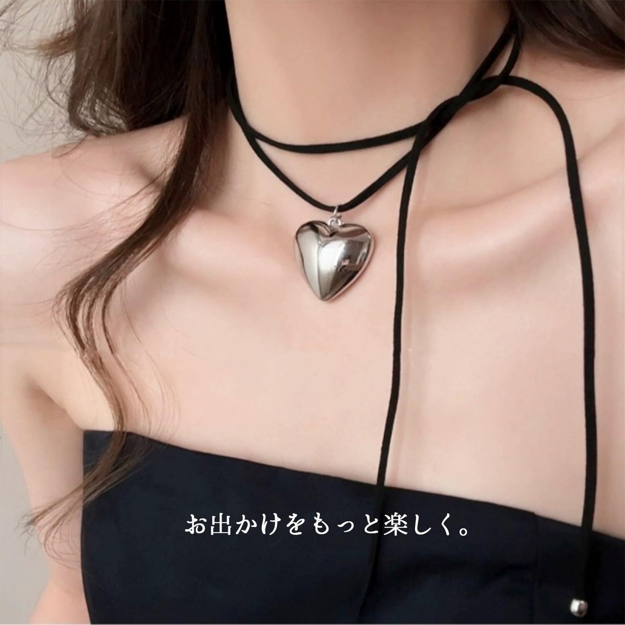 チョーカーと存在感のあるハートのモチーフ1つになったレイヤードスタイルが楽しめるアイテム。