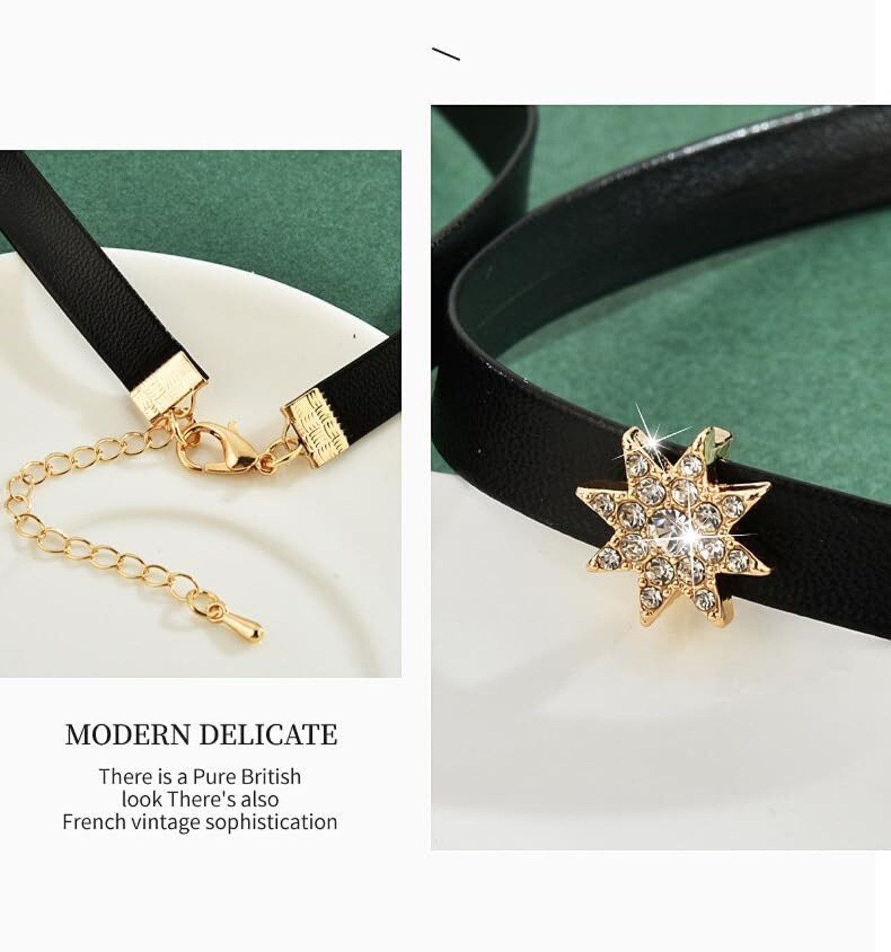 [Deelfel] チョーカーネックレス レディース ムーン&スター ペンダント ブラック PUレザー アジャスタブル シンプルデザイン ファッションアクセサリー