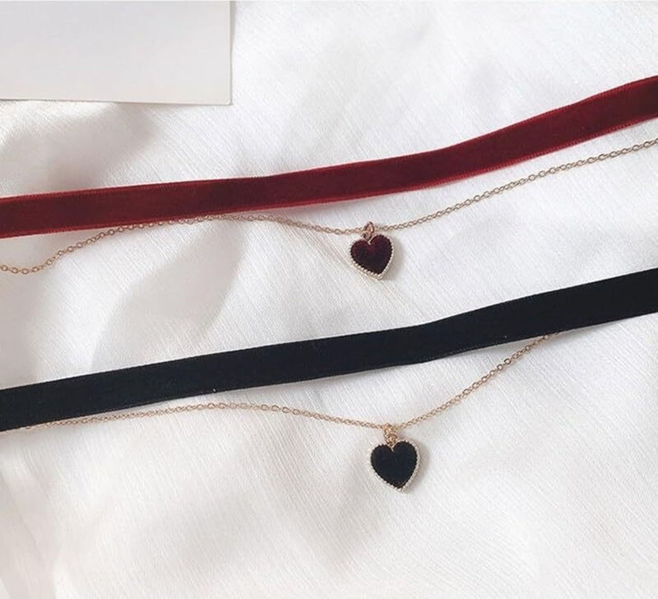 [Deelfel] チョーカー ネックレス レディース ベルベット ハートペンダント 2連デザイン エレガント ゴシック風 フェミニン アクセサリー