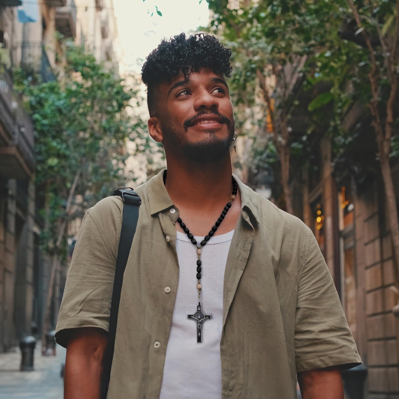 祈り、ファッション、装飾に万能。祈りと瞑想用にデザインされていますが、カトリックのネックレスとして着用したり、車のバックミラーに飾ったり、祝福のために家の祭壇に置いたりするのに十分なスタイリッシュさです。