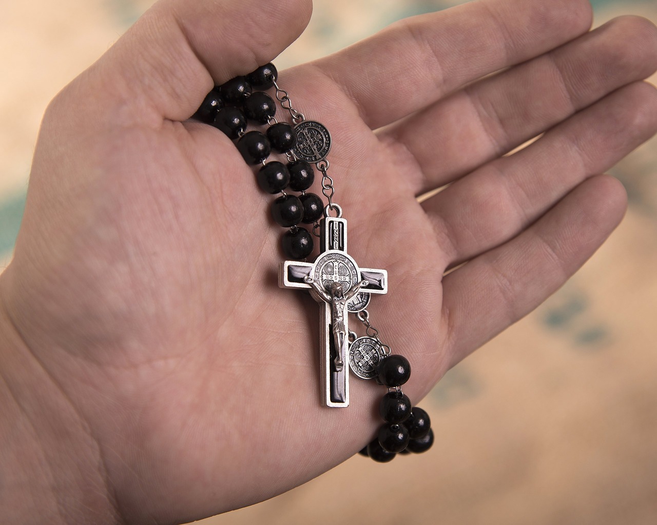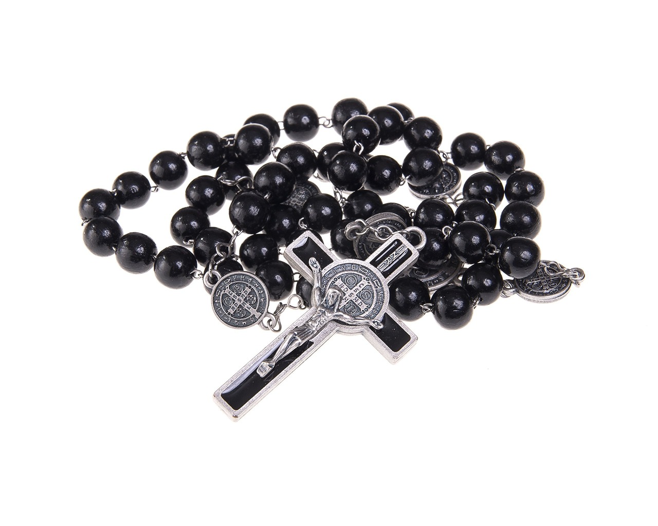 IntercessionTM 聖ベネディクト ロザリオ - ステンレス鋼製チェーン ウッドビーズ付き - ブラジル製