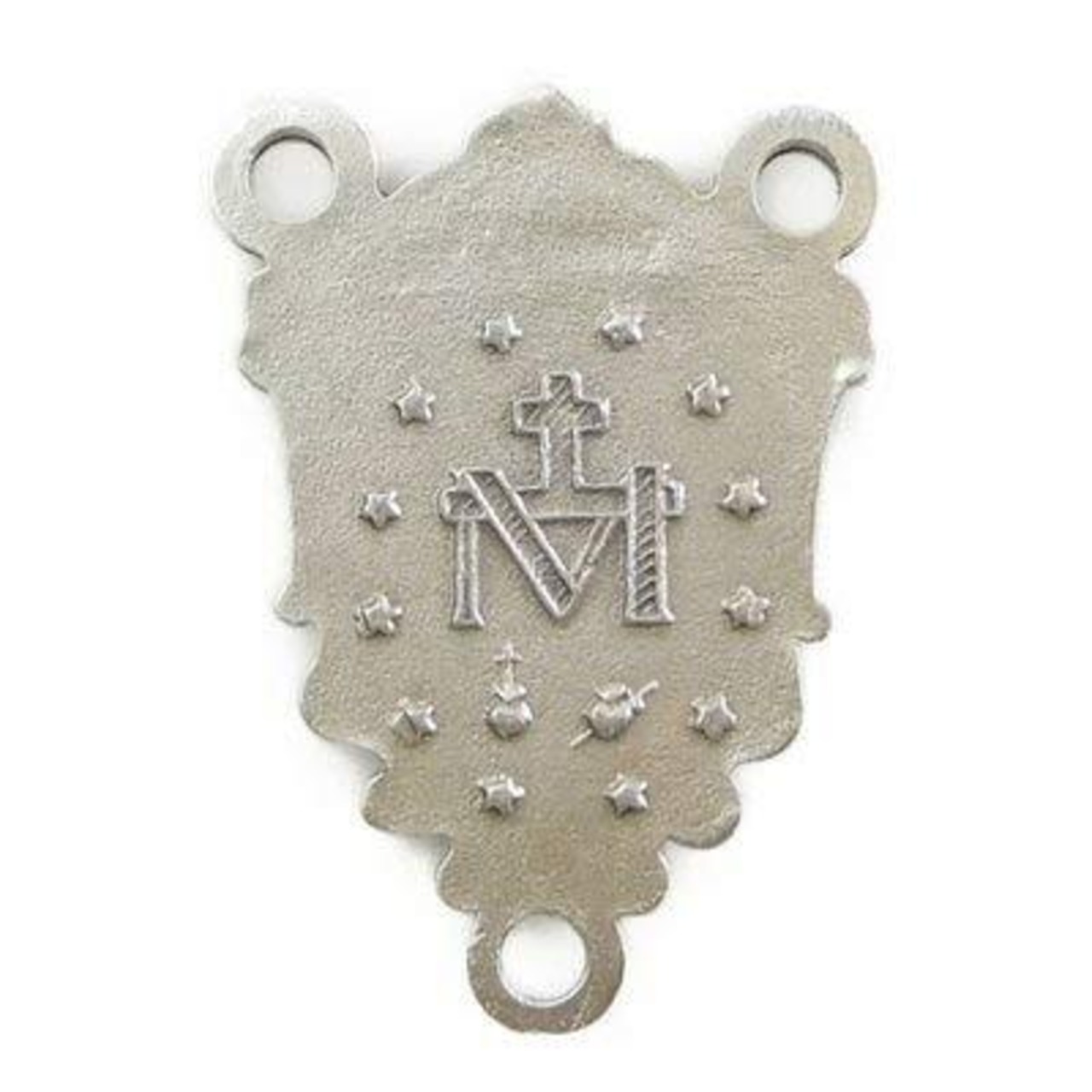 ロザリオのセンターメダイです。 不思議のメダイの可愛らしい花が飾られた素敵なデザインのセンターメダイです。 ※現在のロットは裏が若干凸凹しているものもございますのでご了承ください(写真参照) 不思議のメダイ 1830年11月27日、フランスはパリの愛徳姉妹会修道女カタリナ・ラブレのもとにマリア様が現れ、この姿の通りにメダイを 作ってもらいなさいとおっしゃられ作られた物です。 このメダイを身につけて病気が治る等の奇跡が多くおこったことから、不思議のメダイ、奇跡のメダイと呼ばれて世界中の人々に愛されています。 不思議のメダイのデザインの意味 表:悪の象徴の蛇を踏みつける無原罪の聖母マリアがお祈りの言葉(日本語訳:原罪なくして宿り給いし聖マリア、御身により頼みたてまつる 我等のために祈り給え)で囲まれています。 裏:(十字架上のイエスキリスト)M(聖母マリア/Mother) I (Immaculata無原罪の) 左のハートはイエスキリストの聖心、右は聖母マリアの御心 教会のシンボルである12の星 サイズ:縦約2.3(2.0)cm×横約1.55cm