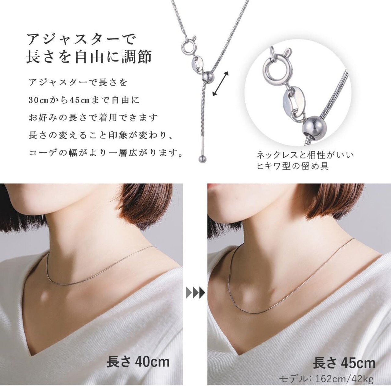 【バリエーション豊富】チェーンの種類がスネークチェーン、あずきチェーン、ボックスチェーン、ボールチェーン、満点星チェーンの5種類、カラーがシルバー、ゴールドの2色の計10種類からお選びいただけますので貴方のお気に入りがきっと見つかります。シンプルに着用したり、お手持ちのチャームなどと合わせてみたりとお好みのスタイルでお楽しみいただけます。 【長さが自由に調節可能なアジャスター付き】 アジャスターで長さを自由に調節可能(30cm、35cm、40cm、45cm)