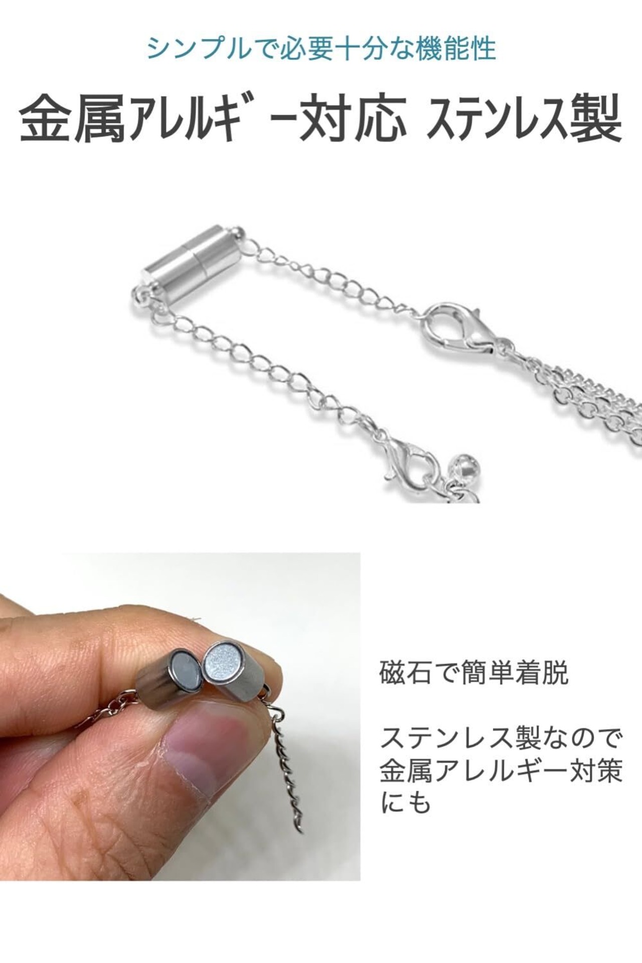 ネックレスをマグネットで留められるようになるパーツ 金属アレルギー対策のステンレス製 長さを調節できるアジャスター 着脱が簡単になるのでストレス軽減