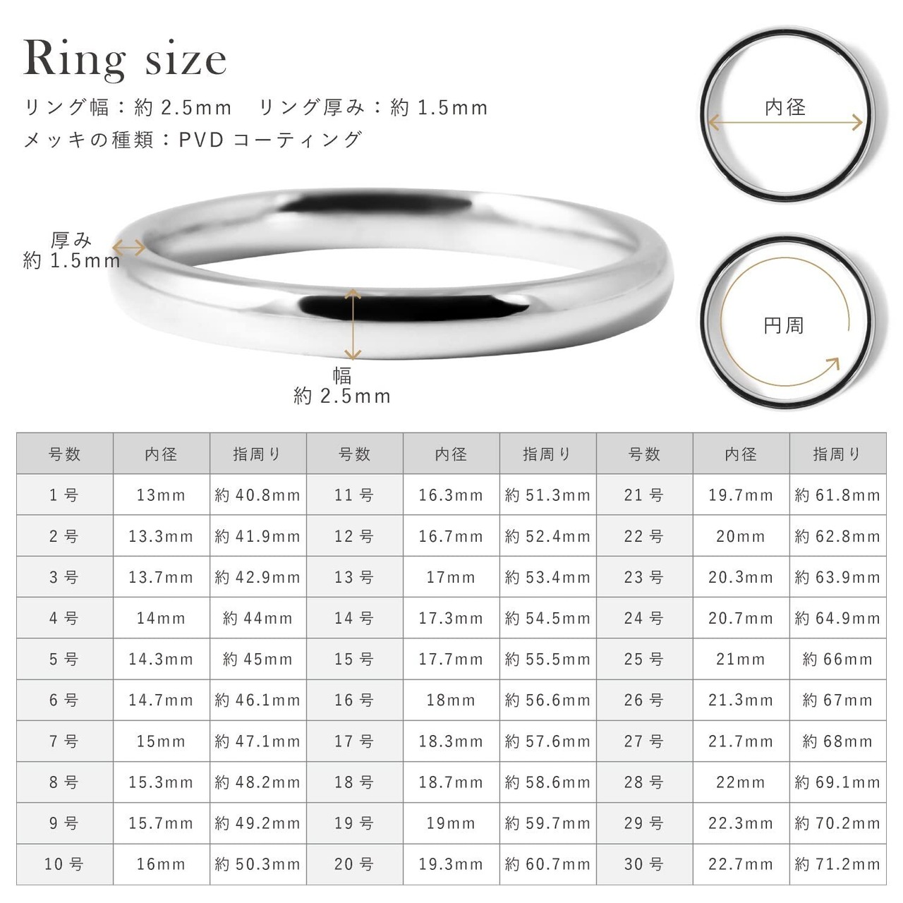 ・商品仕様:2014年9月から販売開始・各種カラー ・素材:サージカルステンレス(316L)・リング幅:約2.5mm リング厚み:約1.5mm ・専用の巾着が付いております。