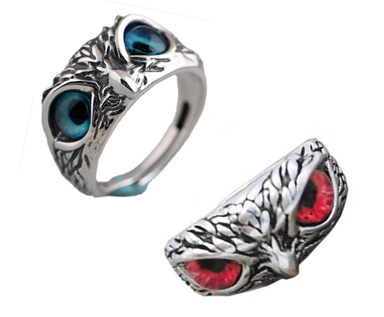 指輪 シルバー925製 ふくろう「幸運の鳥」華奢 調整可能 記念日祝い日誕生日バレンタインデーファッション アクセサリー Blue+Red