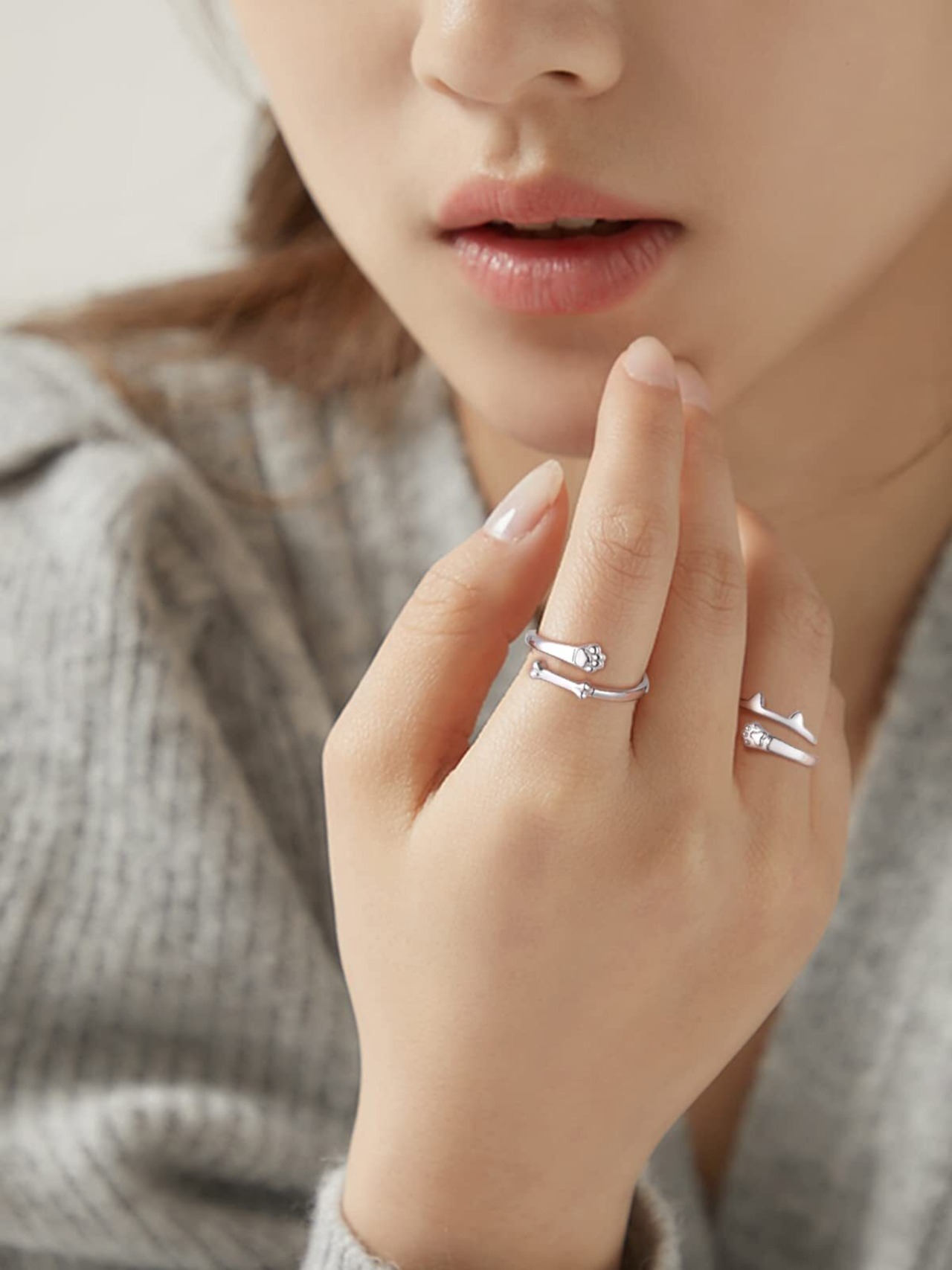 [オープンリング] フリーサイズなのでどの指にもお使いいただけます。1つ付けはもちろん、重ね付けやミディリングとしてもお楽しみ頂けます。薬指、人差し指、中指にと、どの指にもお使い頂けます。