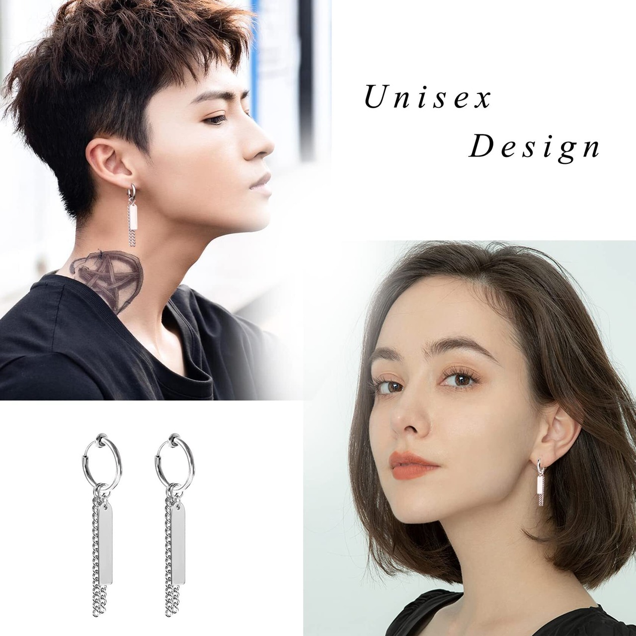 【人気でおしゃれなデザイン】フープタイプにチェーンやスティックなどの流行なパーツが付いた揺れるフェイクピアスです。ピアスのパーツは付けたり、外したりできるし、自由に組み合わせることによって異なるスタイルを楽しめます。 韓国 K-POPアーティスト、韓国アイドル、日本のダンサー、HIPHOP、B系など着用している人気のデザインです。イヤリングをペアでつけたり、片耳だけ付けたり、重ね付けたり、軟骨ピアスとして付けたりして1色々な付け方法があり、通常のフープイヤリングに飽きてしまった方にとてもオススメなアクセサリーです。