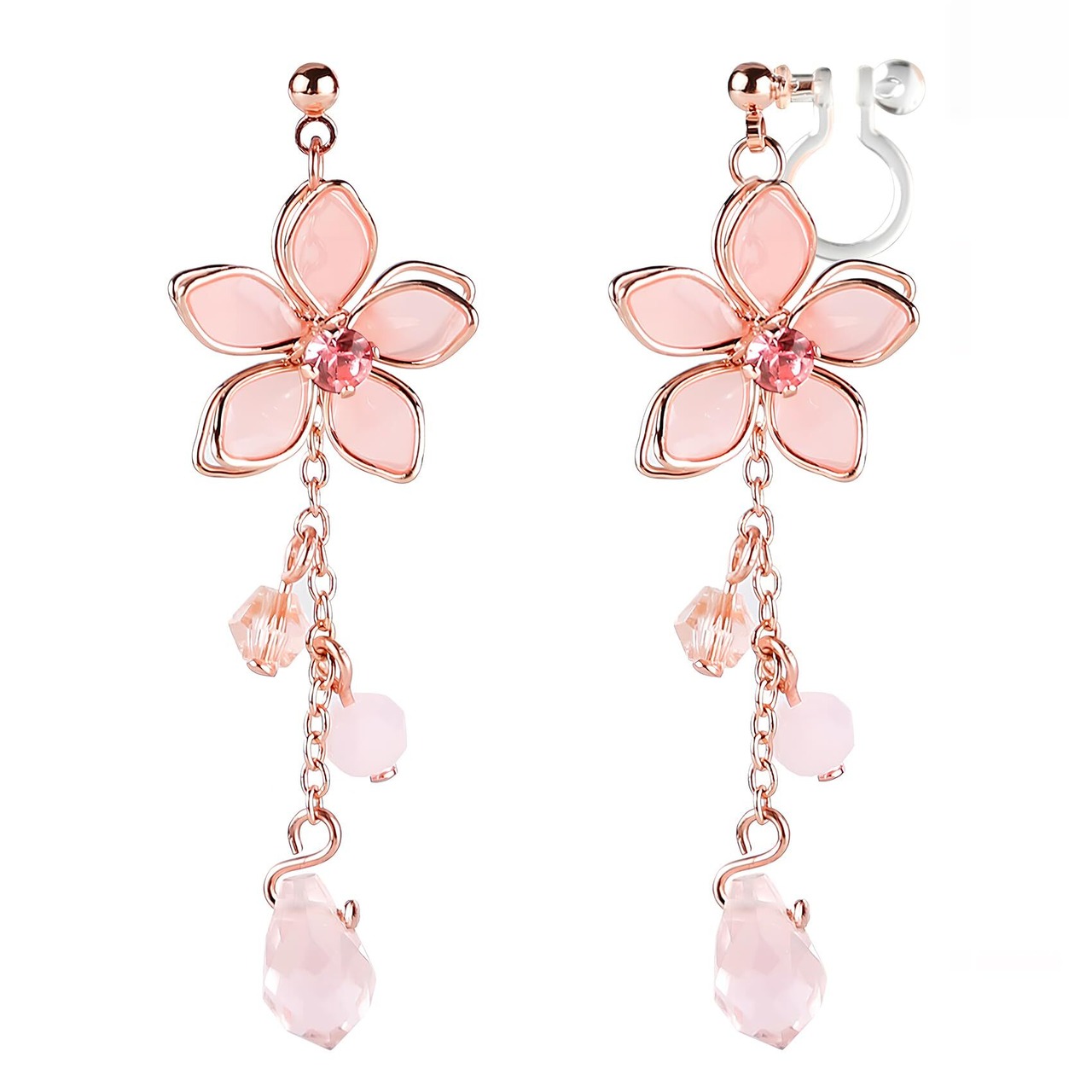 【❀上品】桜の花 のモチーフイヤリング はかわいくてきれいです。フラワーの中でジルコニアを飾ります。高級感ある輝きを放ちます。異なる角度からきらきら光っていることを反映することができます。浴衣などの和服にもよく似合います。女性ジュエリーらしい上品なデザインが魅力です。